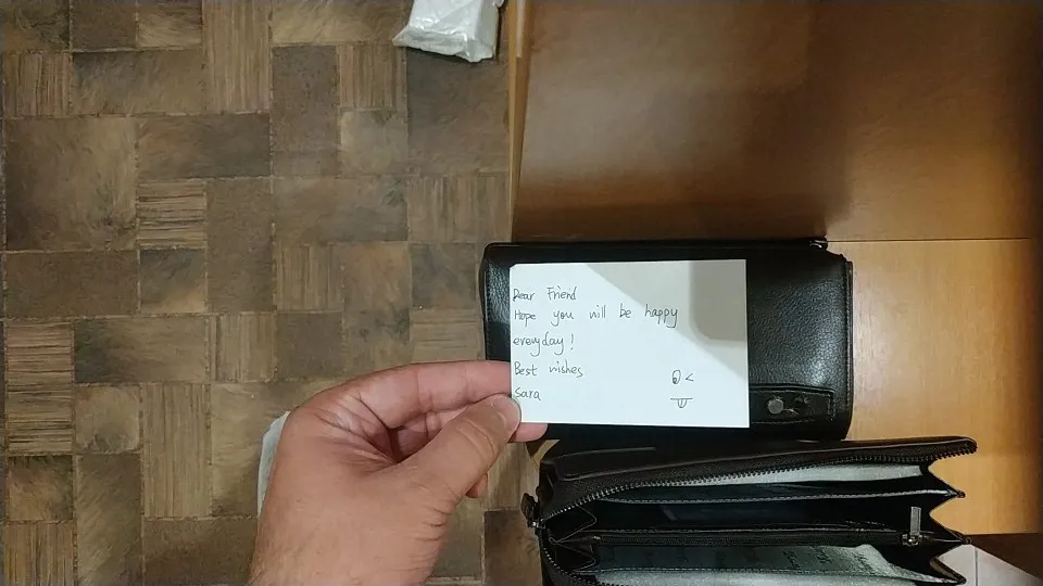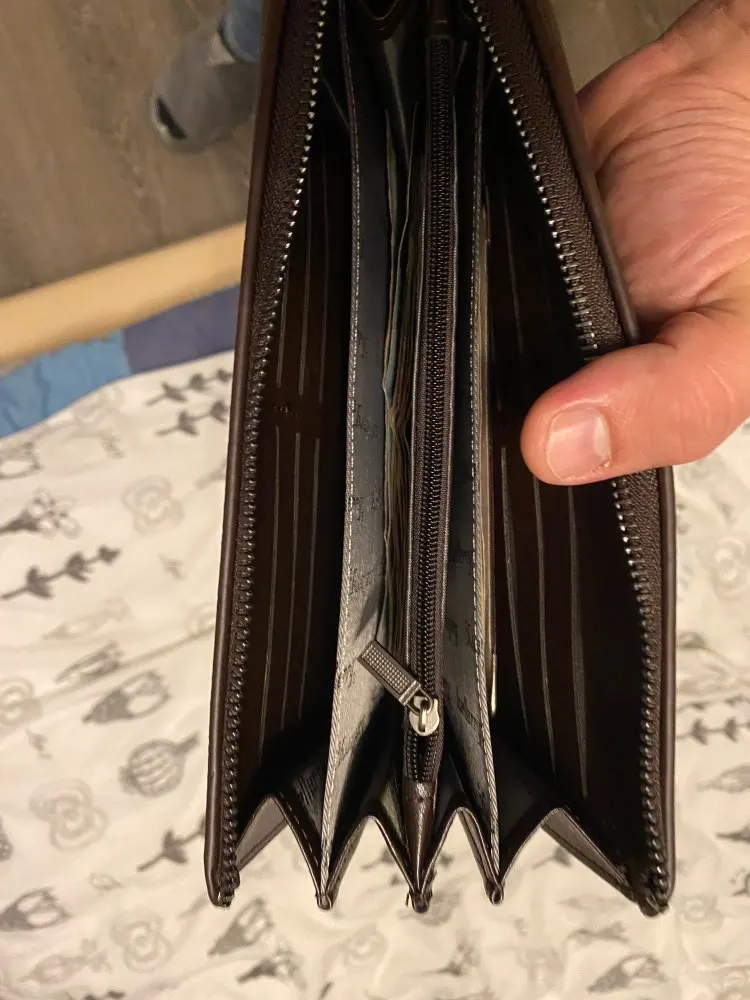 Просто 10 из 10!!! Упаковано отлично! Хороший кожзам-не ожидала что клатч будет таким крутым! Внутри была записочка от продавца-очень приятно ))) очень вместительный-место есть просто для всего. Заказывала супругу т.к. вечно все в карманах и бардак))) он не сторонник китай мамы-но даже ему понравилось, он очень доволен) в магазине дешевле 1,500 такой не найти! Продавца советую и буду заказывать ещё))