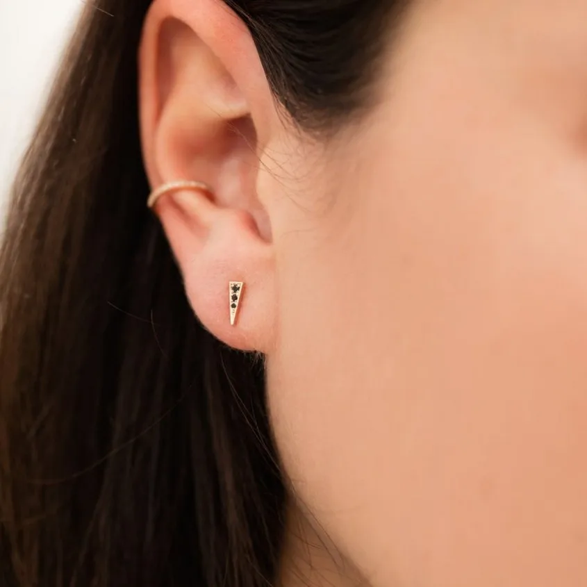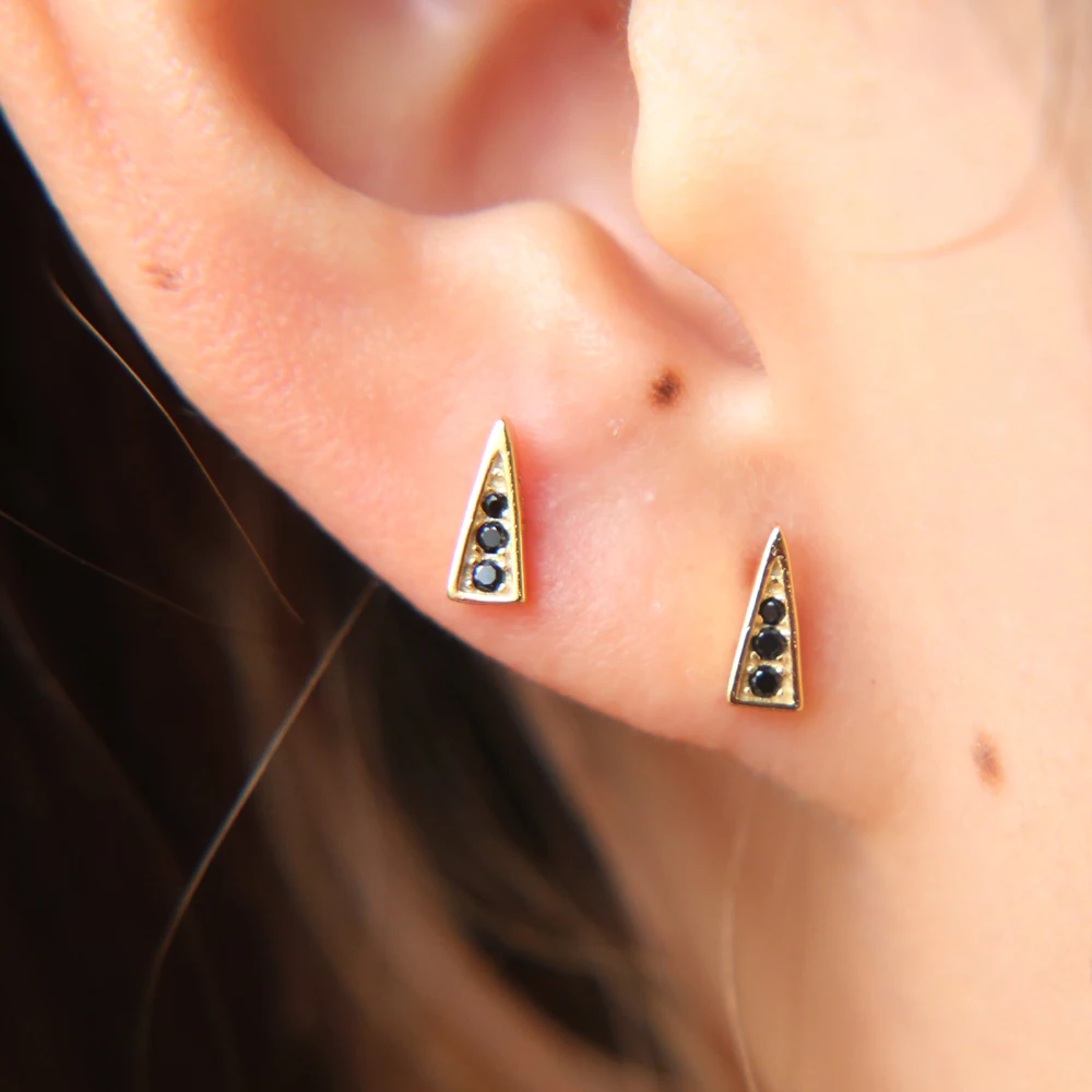 Женские серьги-гвоздики из стерлингового серебра 925 пробы с треугольным кубическим цирконием, золотистые и черные с 3 камнями