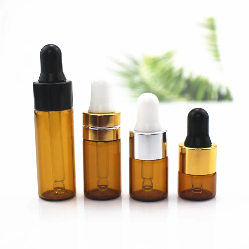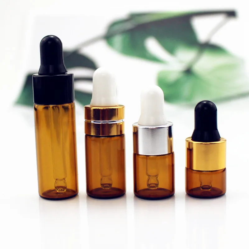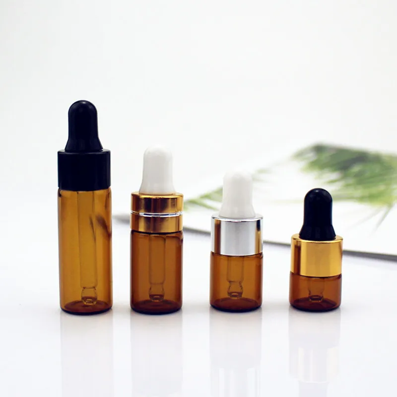 Бутылка-капельница из янтарного стекла 10 шт.упак., 1 мл, 2 мл, 3 мл, 5 мл, пустая бутылки для эфирного масла-капельница, Многоразовые прозрачные стеклянные флаконы