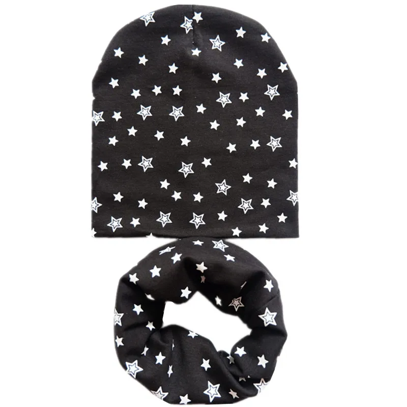 Шапка с шарфом и принтом звезд для мальчиков и девочек, теплый осен...