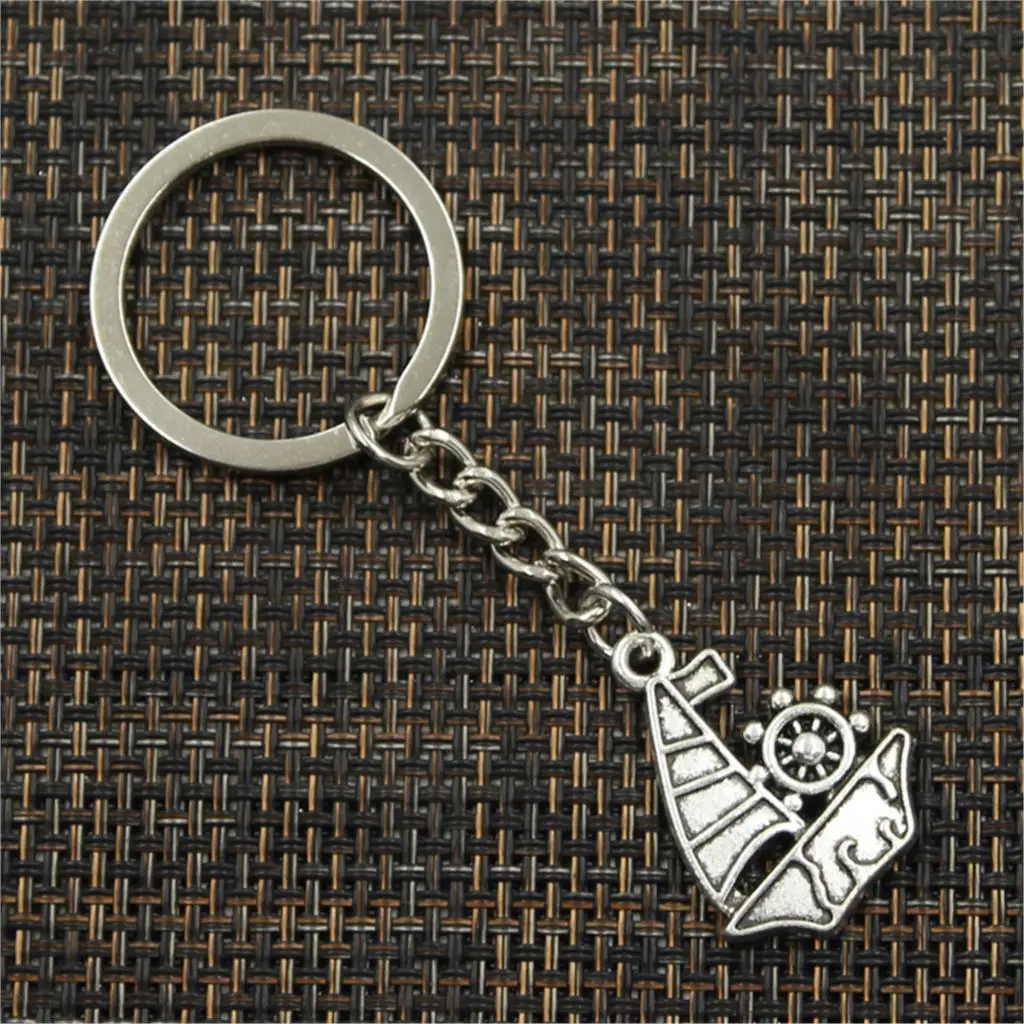 Новинка, модный мужской брелок 30 мм, металлический держатель сделай сам, цепочка, винтажный корабль, лодка, 28x22 мм, серебристый цвет, кулон, подарок
