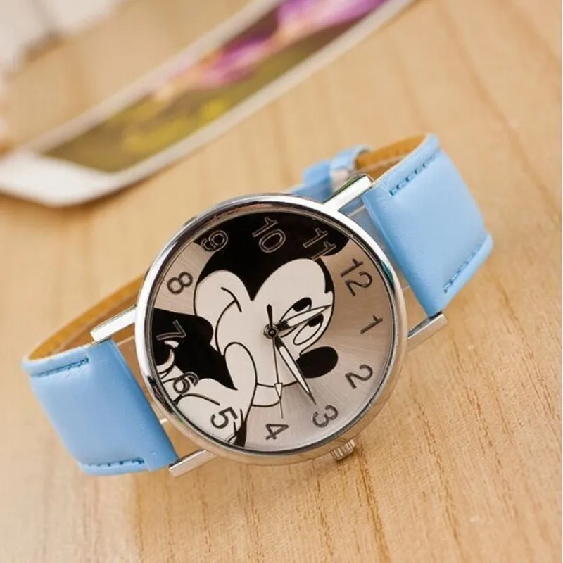 Модный Микки Маус, женские часы, роскошный бренд, Мультяшные, для девочек и мальчиков, для отдыха, кожаные кварцевые часы, Relogio Feminino, хит продаж, подарок