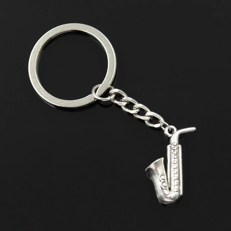 Новинка, модный мужской брелок 30 мм, металлический держатель сделай сам, цепочка, винтажный гудок, саксофон 26x21 мм, серебристый цвет, подвеска, подарок