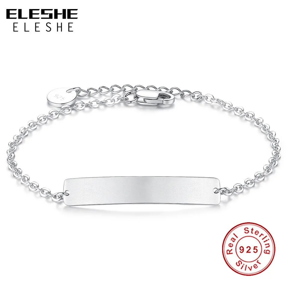 ELESHE Персонализированные 925 Браслеты стерлингового серебра Выгравировано Название шарм браслеты из нержавеющей стали для Для женщин ко Дню Святого Валентина, ювелирное изделие, подарок