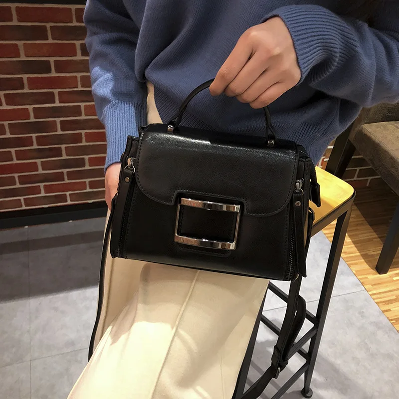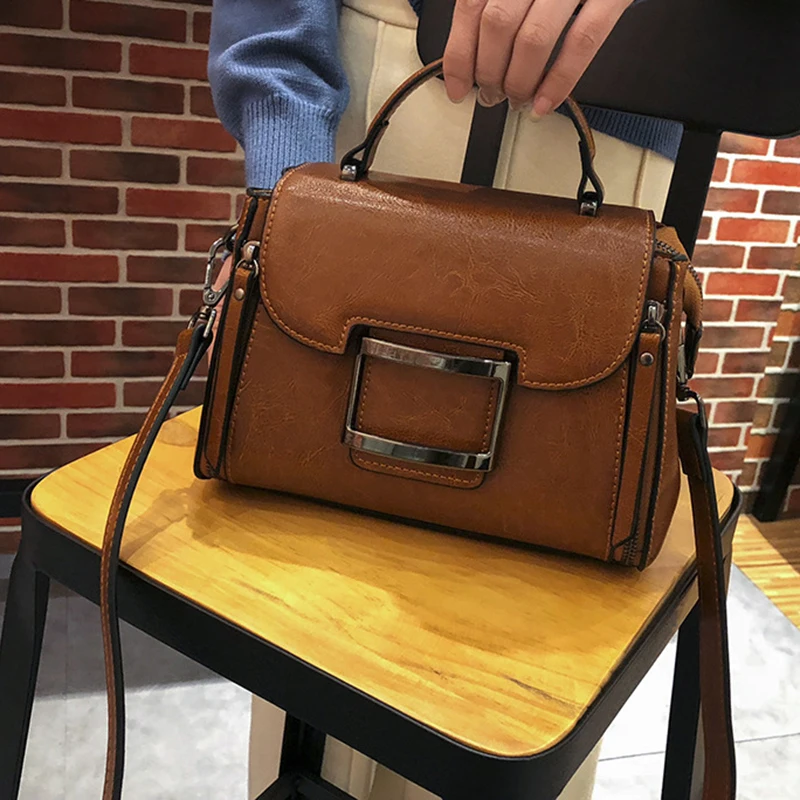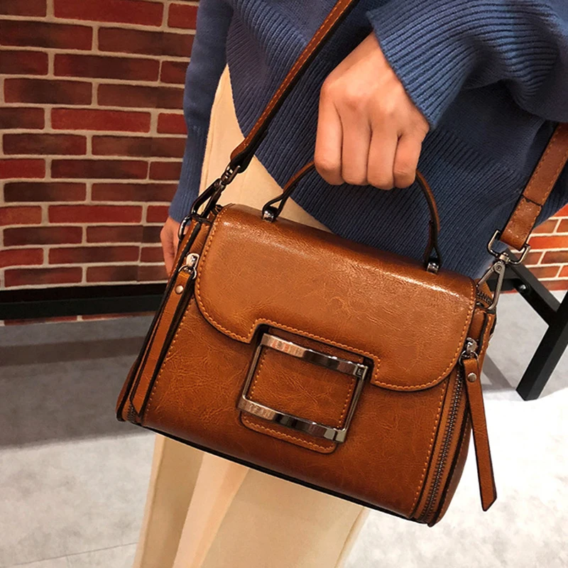 Сумка-мессенджер женская с верхней ручкой, модная сумочка-тоут из воловьей кожи, Модный повседневный саквояж на ремне через плечо из натуральной вощеной кожи