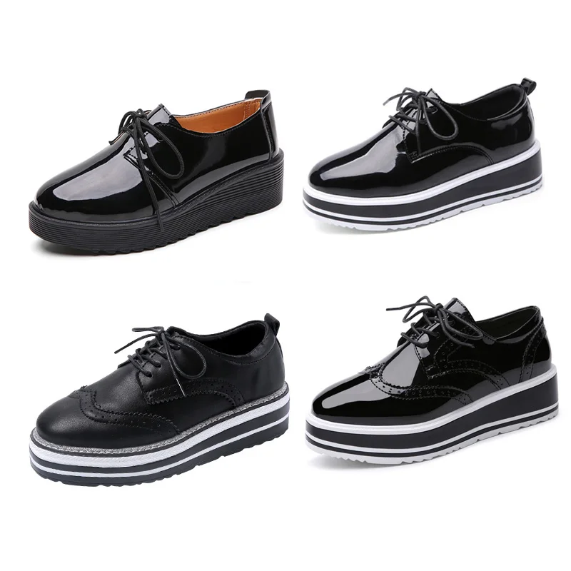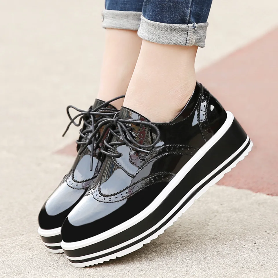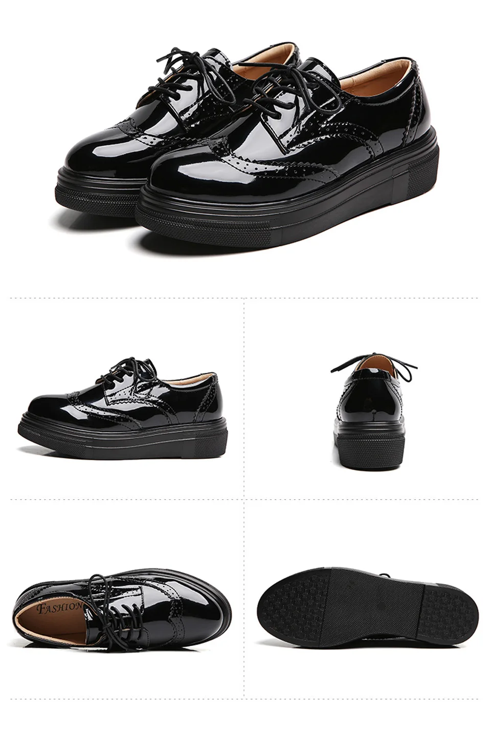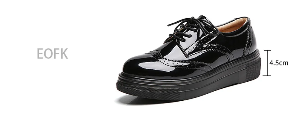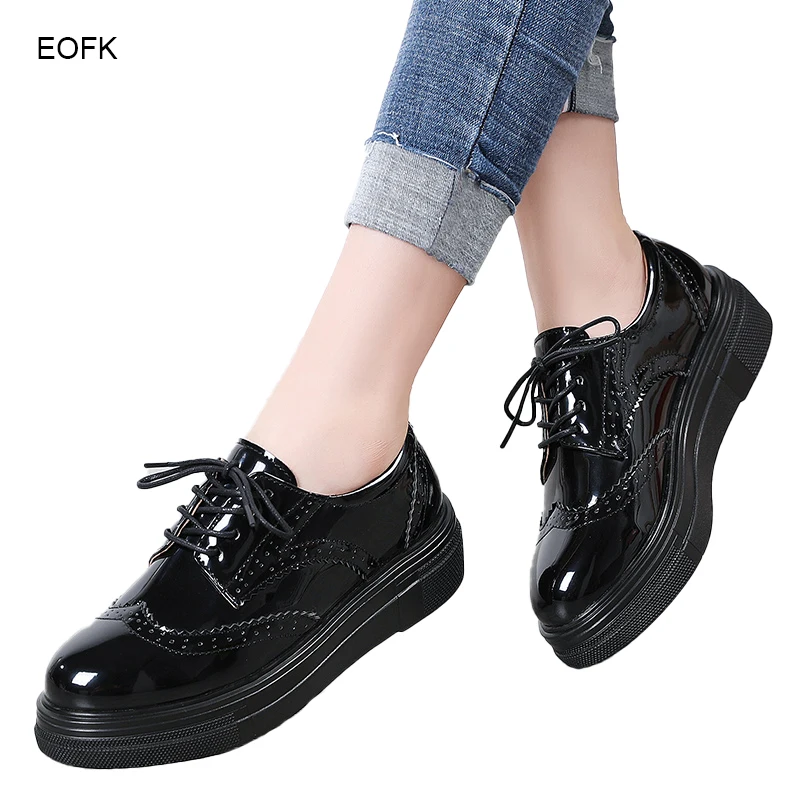 Женские лакированные туфли EOFK, черные повседневные туфли дерби на плоской подошве, классические туфли-оксфорды на весну-осень