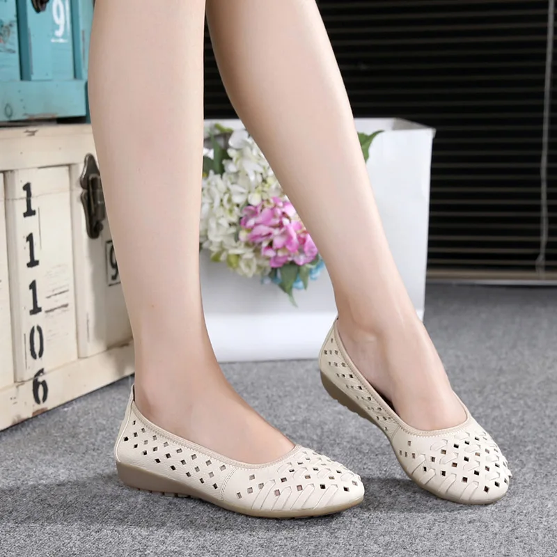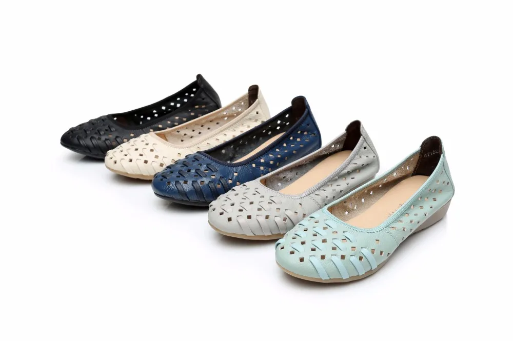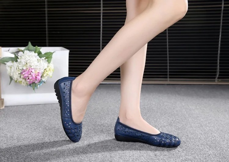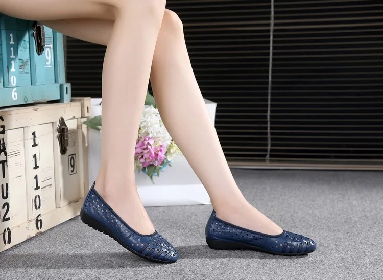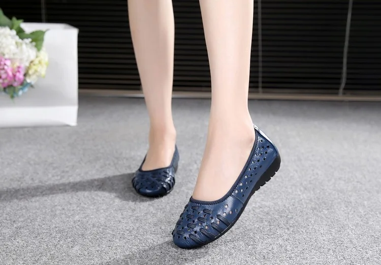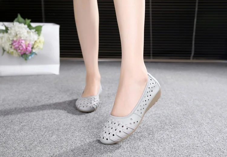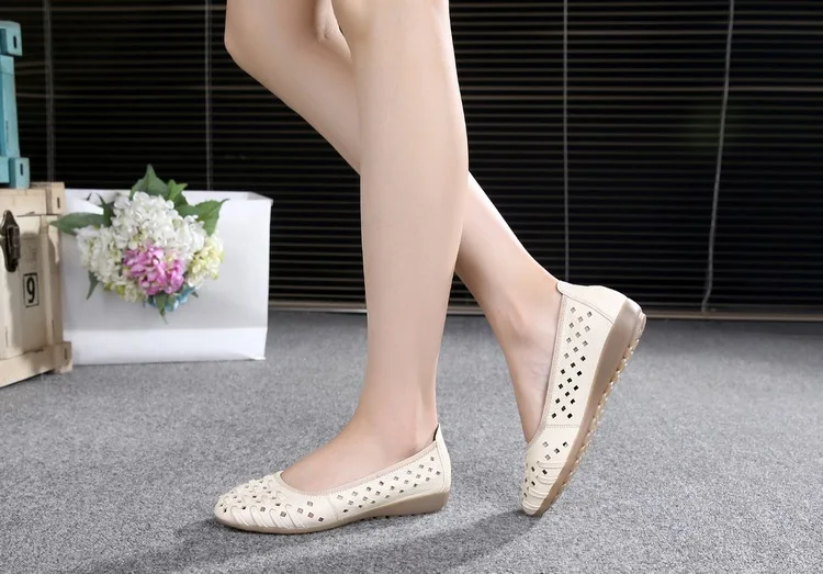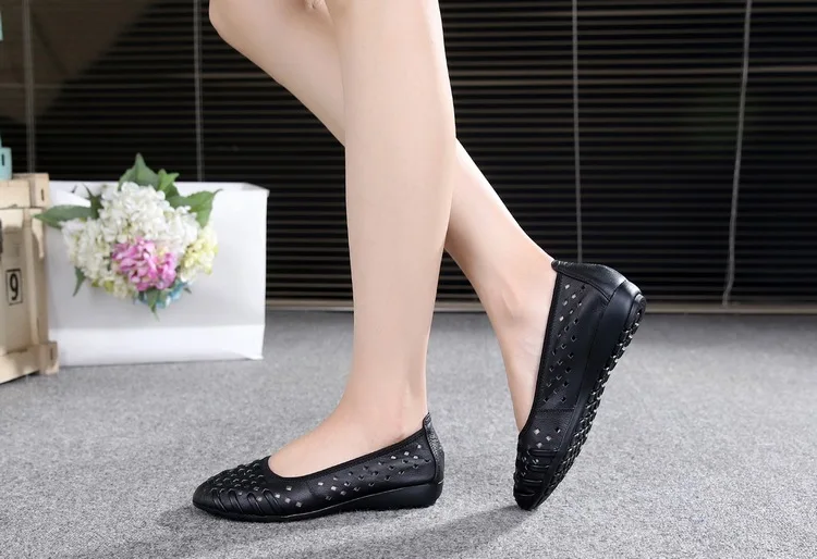 Женские босоножки WOIZGIC, обувь для мам, обувь на плоской подошве, лоферы из натуральной кожи с вырезами, повседневные винтажные, большие размеры 42 43