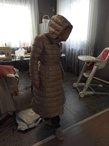 Пальто в целом хорошее, но человек не слишком высокий, до 170 см. Рукава довольно короткие, длина 170 см выше колена, размер XL. Очень легкое пальто для весны и осени. Надеюсь, что вы закажете обувь, потому что это довольно сложно для них: (материал Хороший горный хрусталь внутри пух.