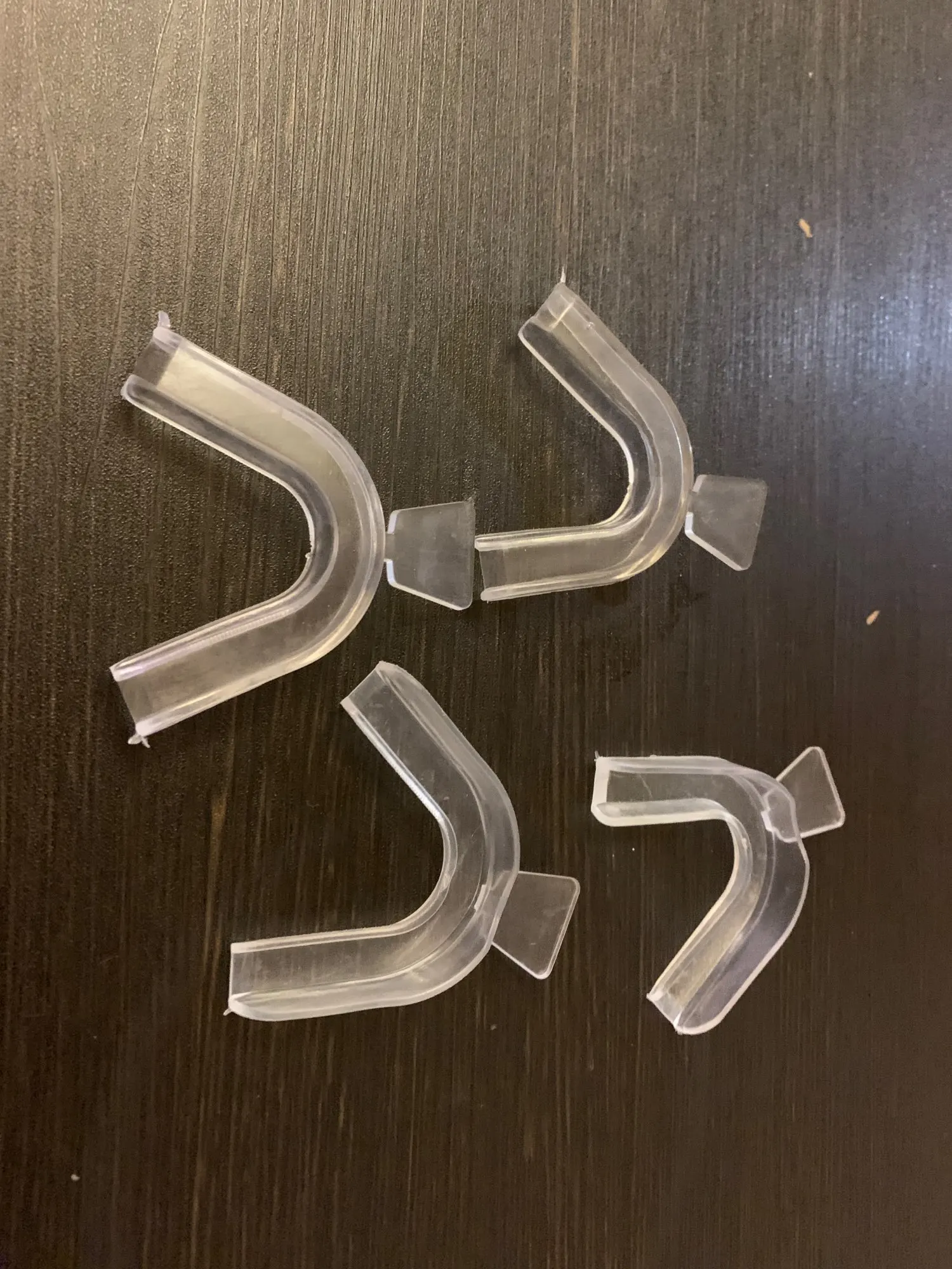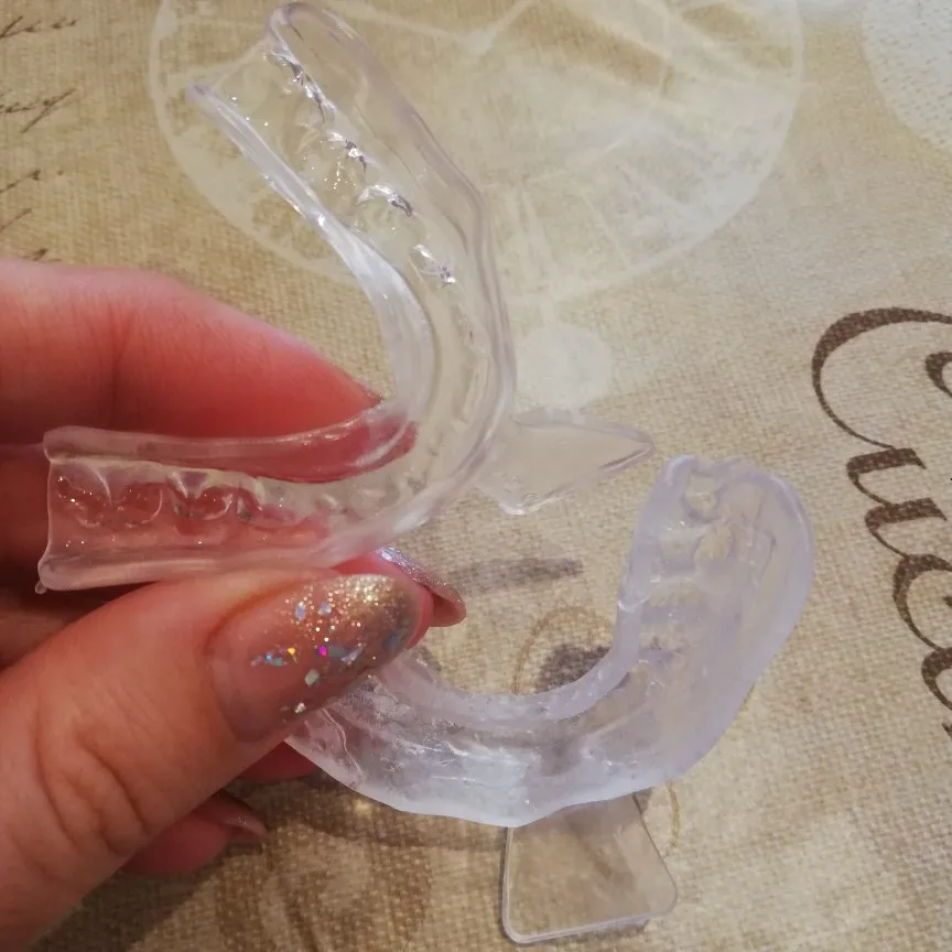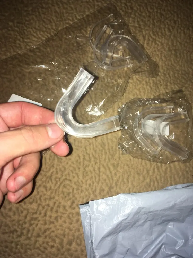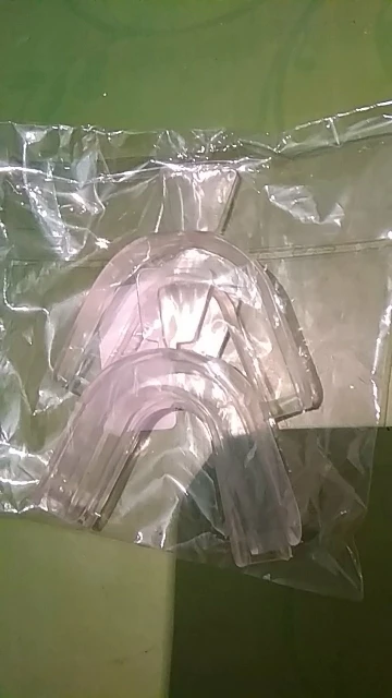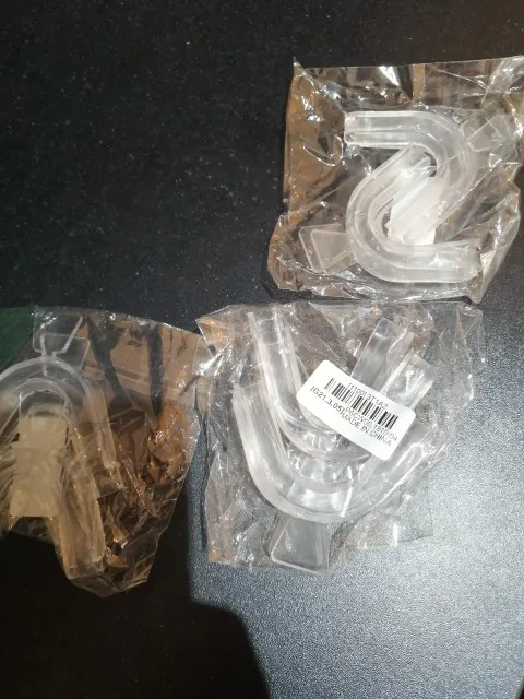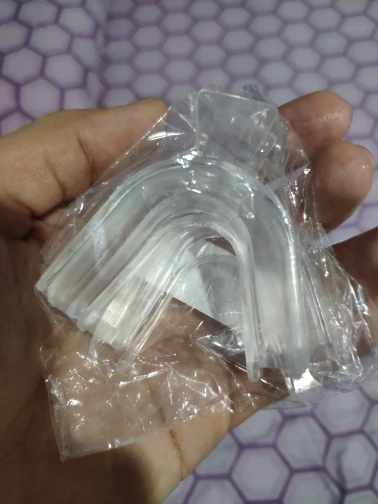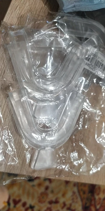 Хорошие многоразовые капы. Использую 2 недели. Отлично подходят для реминерализации гелем rocs. Промыла их хозяйственным мылом ( запаха не было изначально). Налила кипяток в кружку, опустила на 18 секунд (форма на глазах съёжилась, уменьшилась в размере- вытащила) , потом сразу на челюсть. Пальцами плотно к зубам прилепила, челюсти сомкнута (без фанатизма) и секунд 40 подождала. Вуаля- капа готова к использованию. Только хвостик отрезать осталось. Сначала сделала верх, потом низ. Одновременно на оба ряда зубов не делайте. После применения споласкиваю под краном, затем просушиваю полотенцем. Доставка до Брянска шустрая: 11 дней.