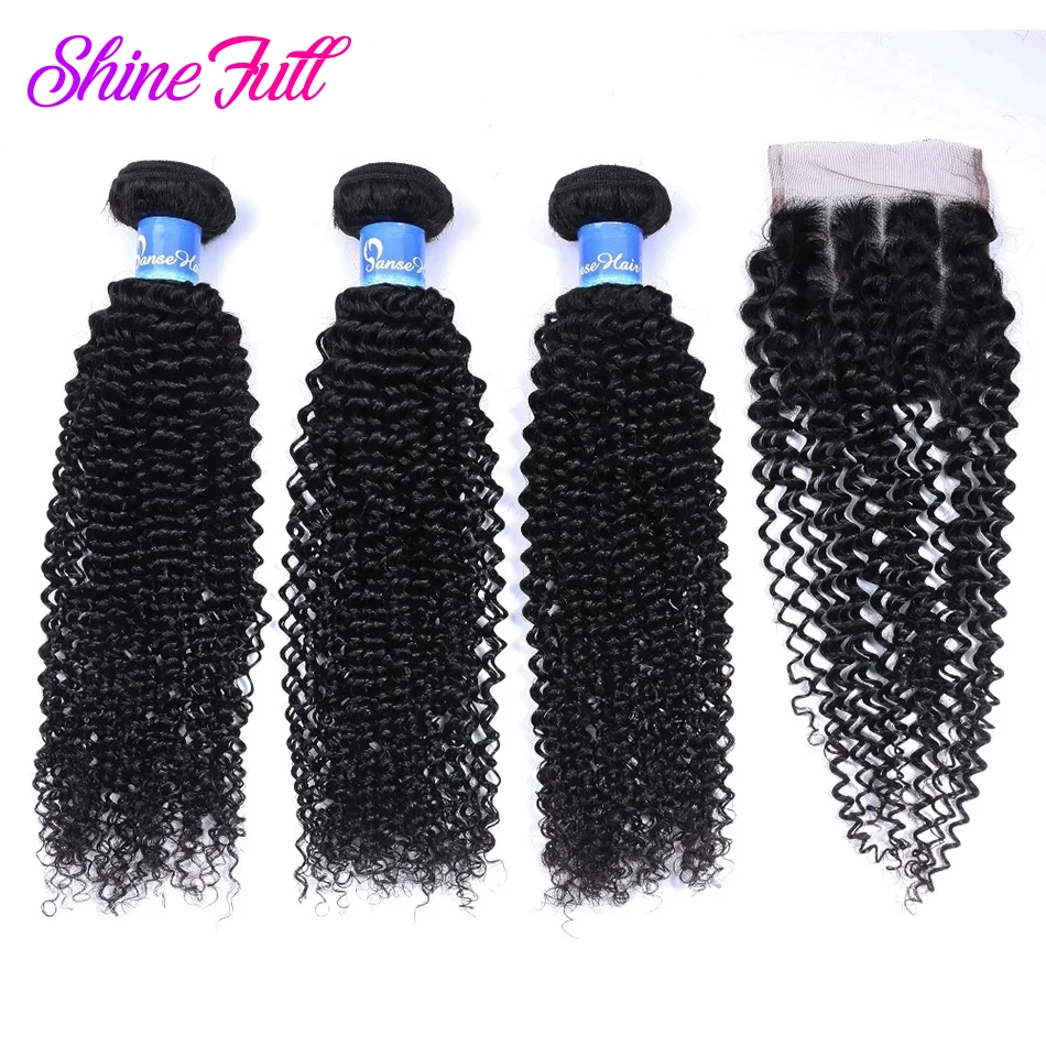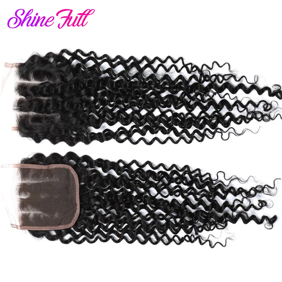 ShineFull бразильские кудрявые волосы, волнистые натуральные цветные пряди с 1 шт. 4x4 застежка, 8-28 дюймов, кудрявые пучки Remy