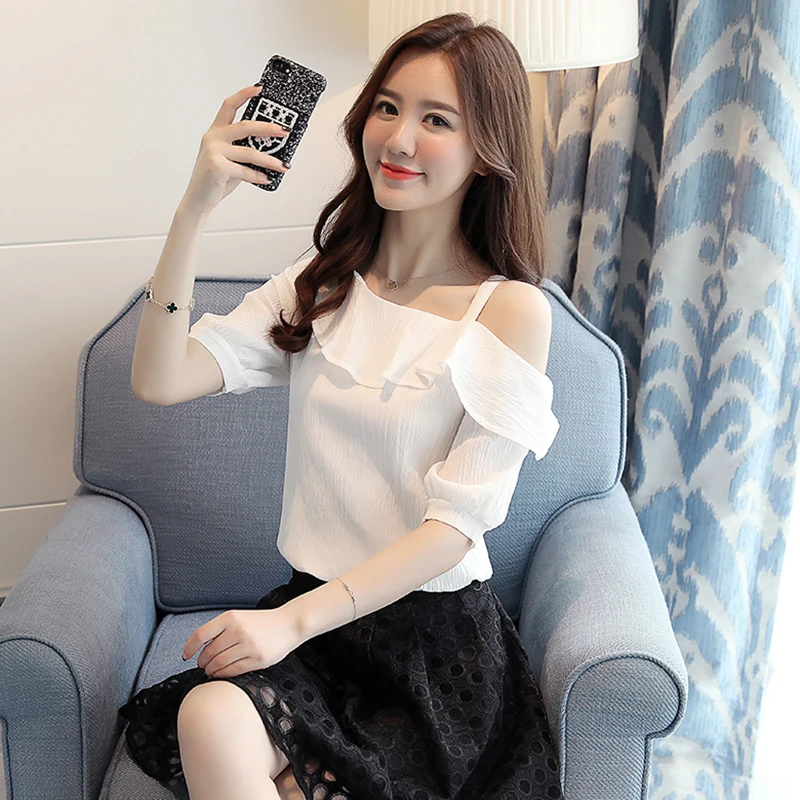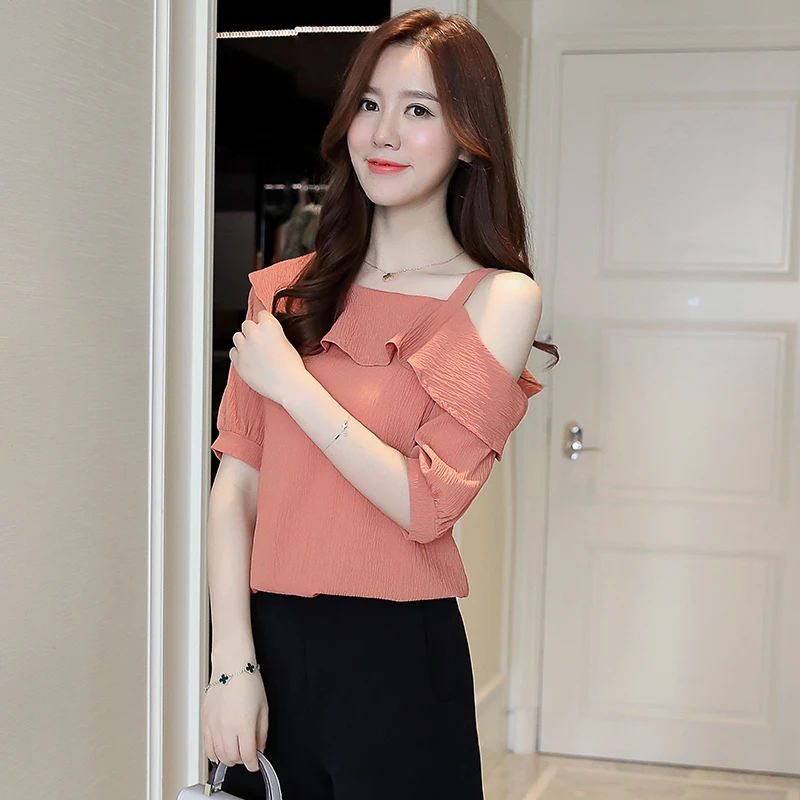 2019 новая шифоновая весенняя сексуальная женская модная одежда с оборками одежда Женская тонкая однотонная женская футболка с рукавами короткими рубашки D562 30
