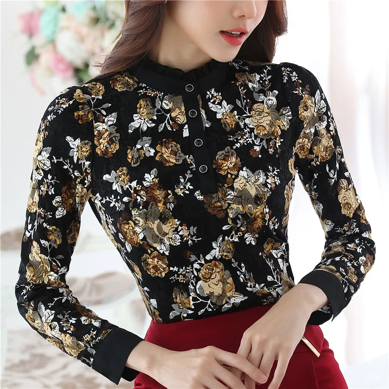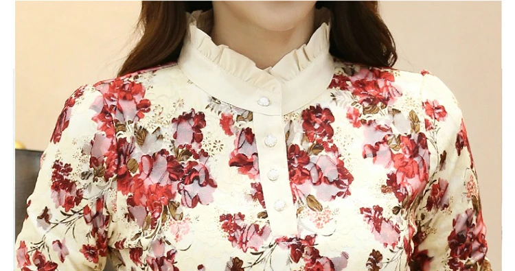 Женские топы и блузки Плюс Размер Топы женская блузка рубашка Мода 2022 длинный рукав кружевная печать блузка, женские рубашки Z05 40