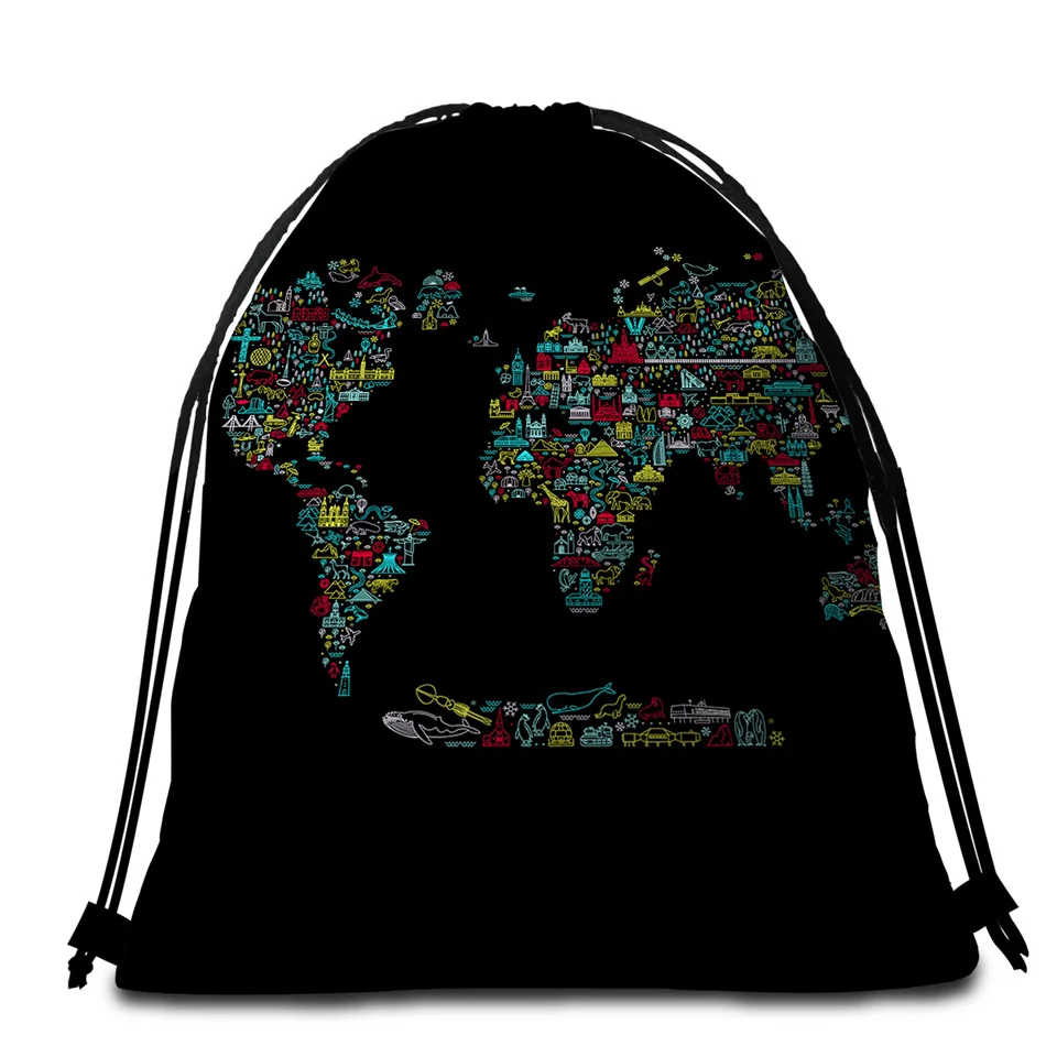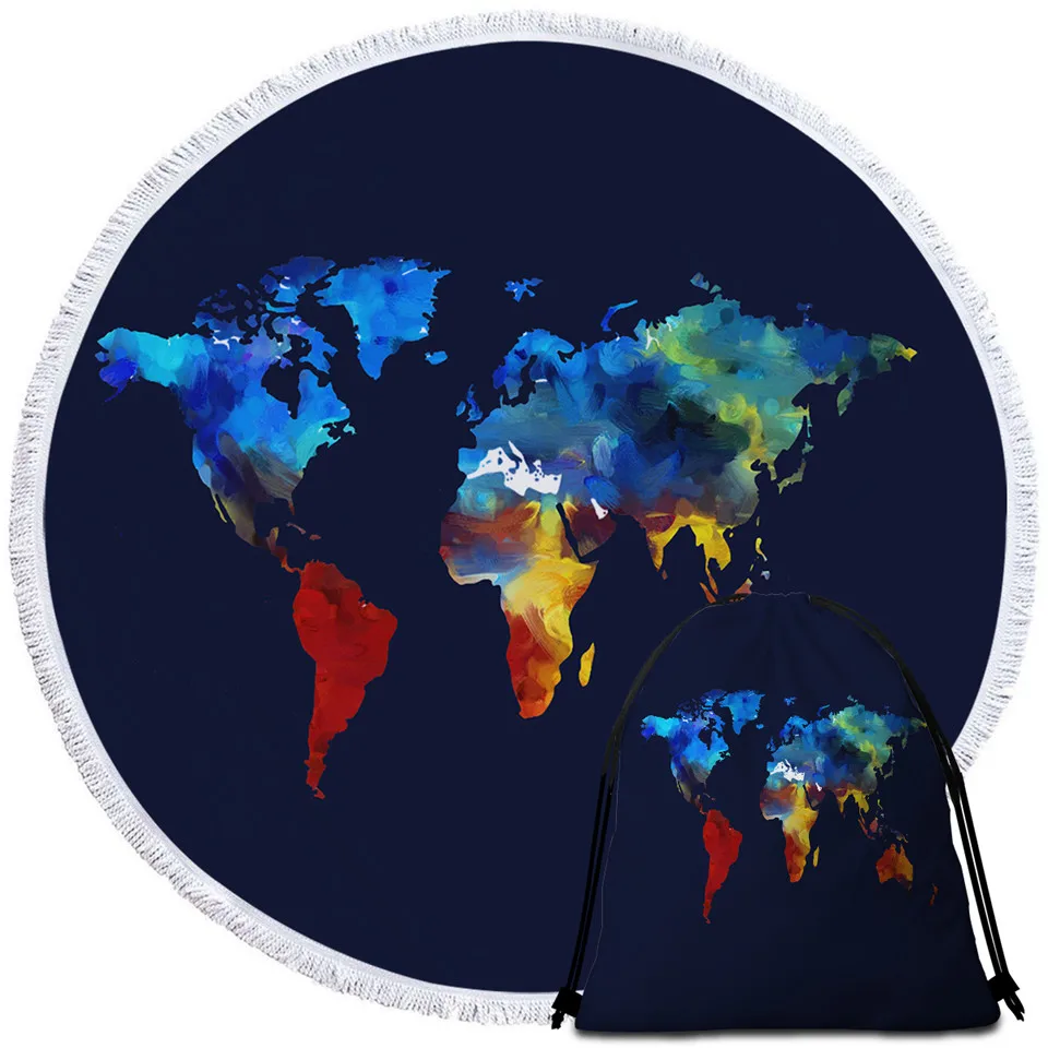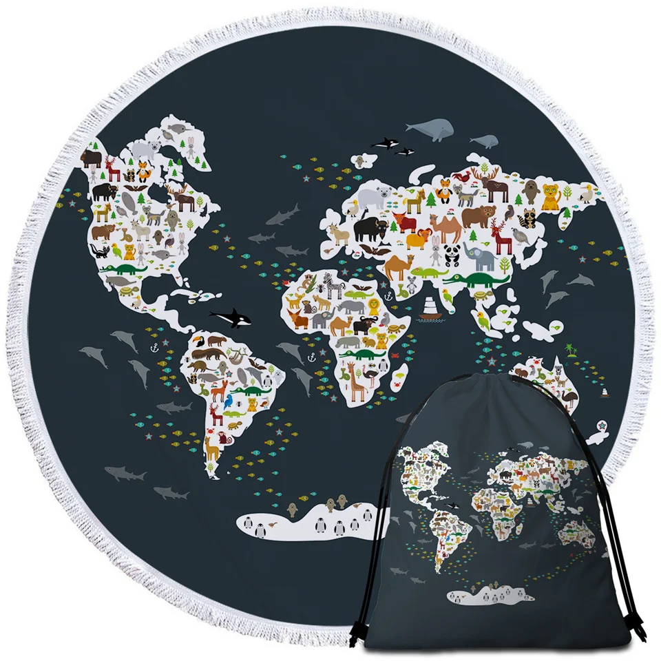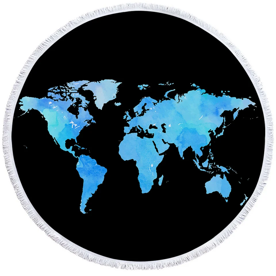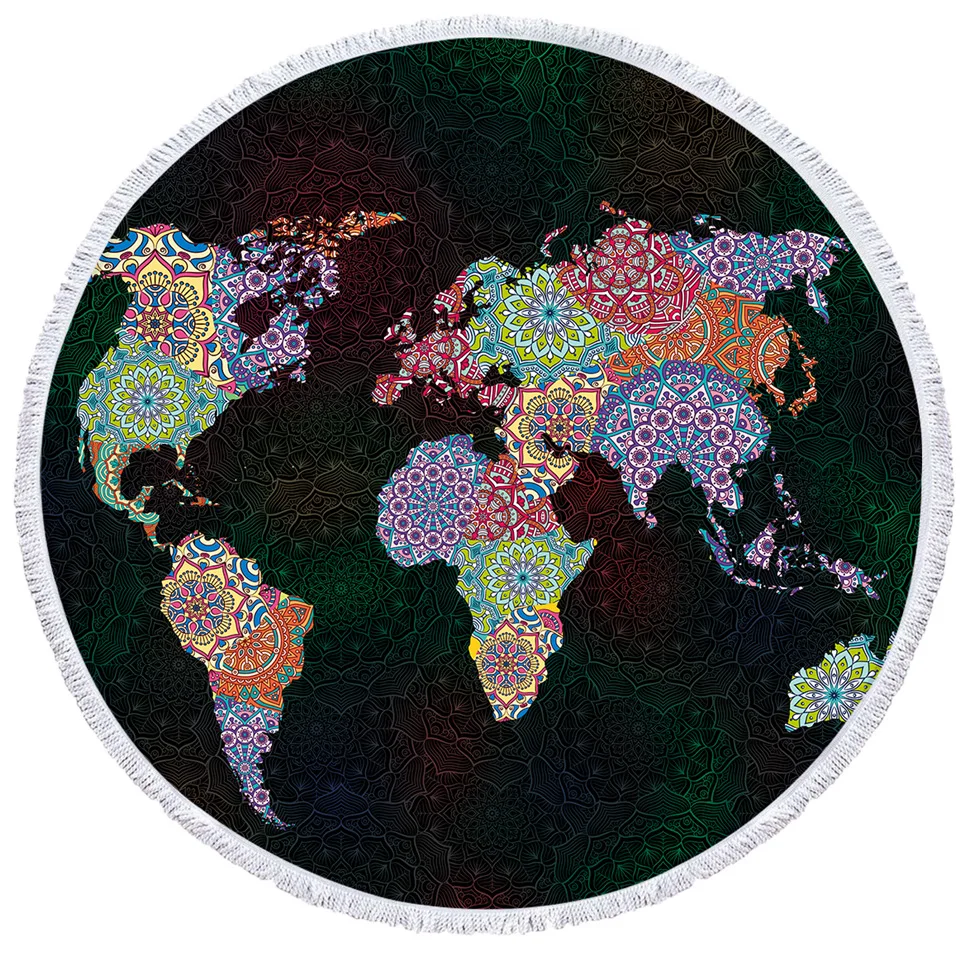 BeddingOutlet, большое круглое пляжное полотенце, для взрослых, для мальчиков, с кисточками, карта мира, летнее банное полотенце, коврик для йоги из микрофибры с принтом, 150 см