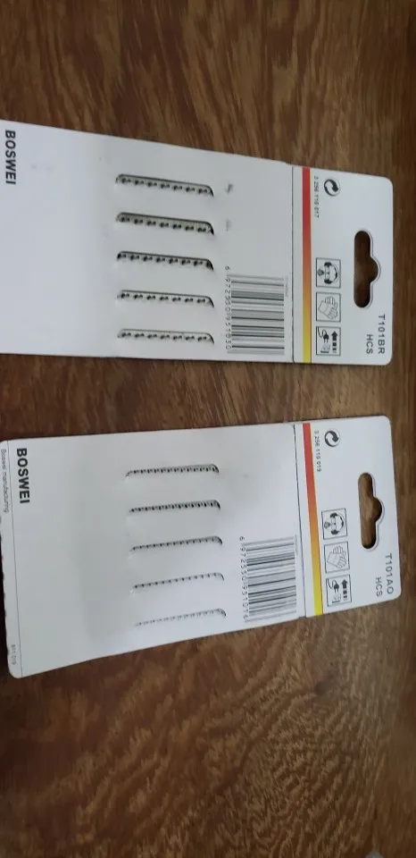 Пилки для лобзика как на фото, точная копия фирмы "Bosch". Металл толстый, зубья острые, в работе пока нет возможности проверить. Доставка до Владимирской области, г. Муром почти два месяца. Трек отслеживался только по территории Китая.
