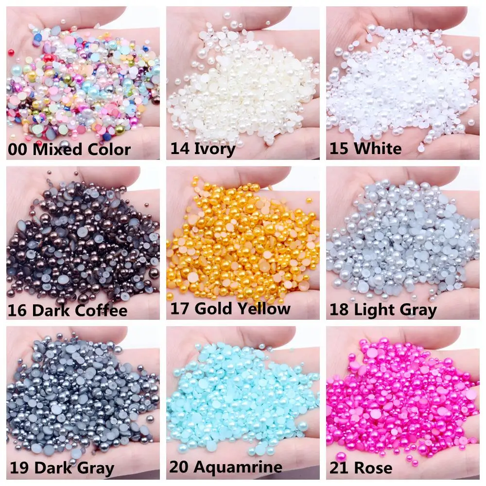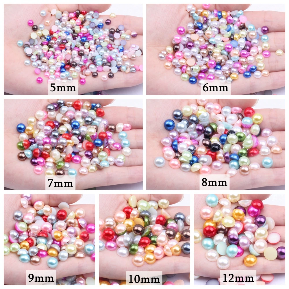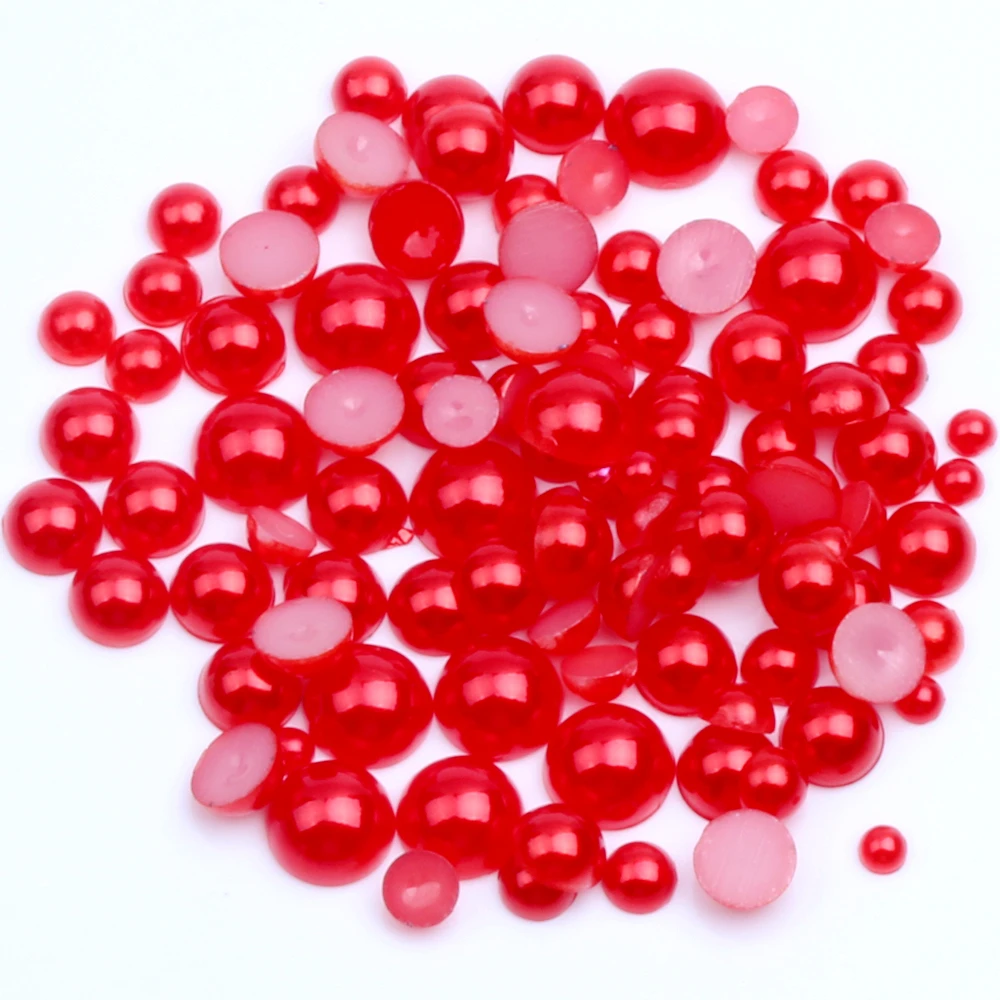 2-12 мм и разноцветные красные полукруглые бусины с имитацией жемчуга, бусины из АБС-пластика с плоской задней поверхностью для украшения ногтей своими руками