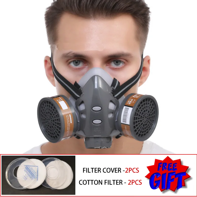 Двойные фильтры, респиратор на половину лица, пылезащитный противогаз, для покраски и распыления, промышленный, домашний, аварийный, безопасный