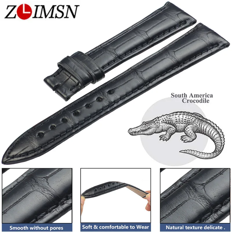 Ремешок ZLIMSN из черной крокодиловой кожи для часов, роскошный браслет с круглым узором для мужчин и женщин, 12-26 мм, Индивидуальный размер, 22 мм