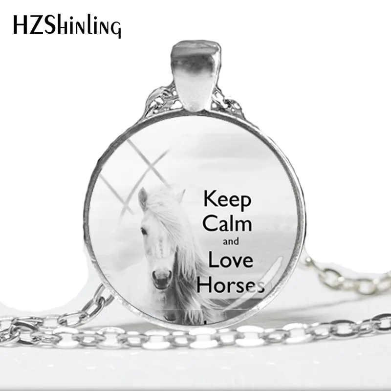 Новинка 2018, ожерелье со стеклянной подвеской в виде надписи Keep Calm And Love с изображением лошадей, белой лошади, фото кулон с художественной печатью HZ1