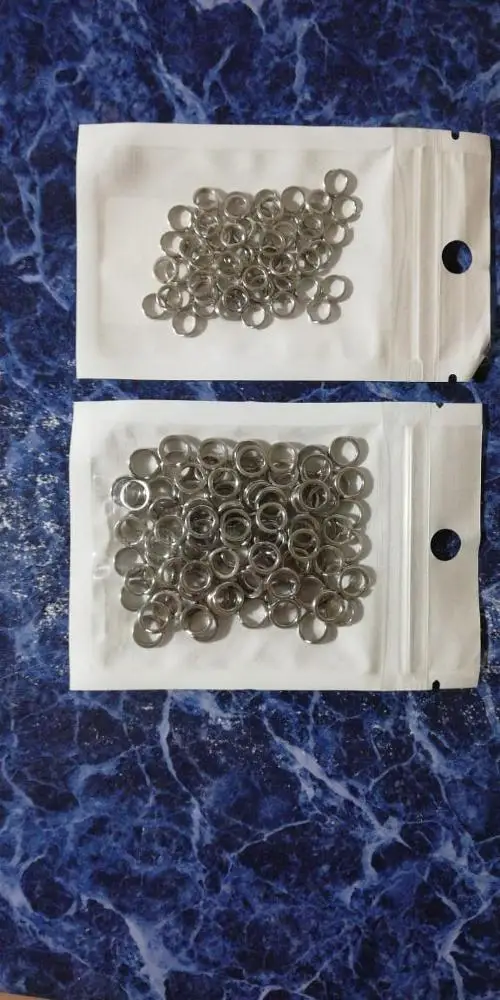 доставка до мур.области быстрая 14 дней.колечки на вид хорошие,крепкие.упаковка в пакетике,были бы в баночки для удобного хранения и транспортировки.по количеству на одну больше.с продавцом не пришлось общаться.будем ещё заказывать.