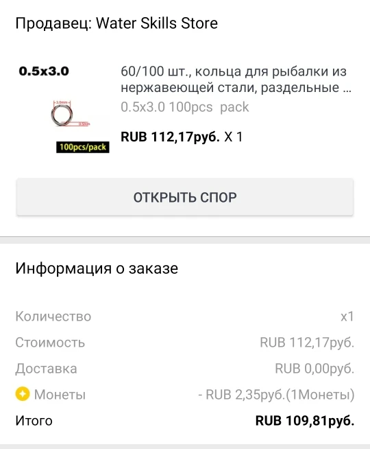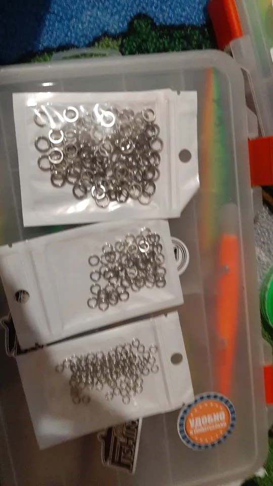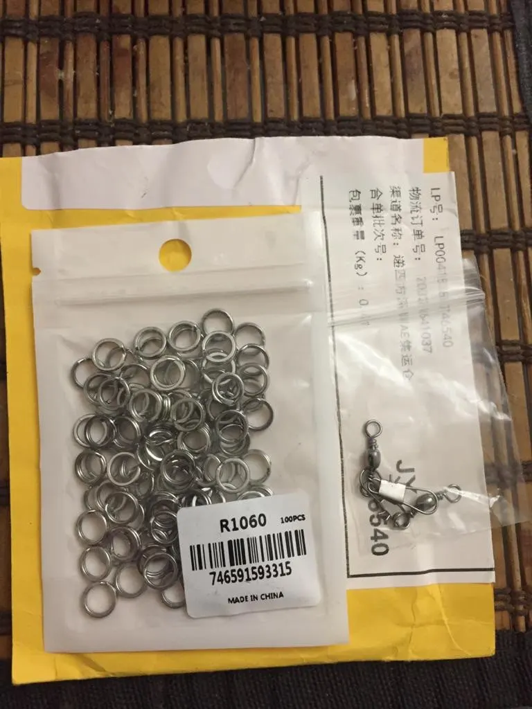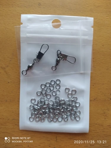 Мелкий пакет с заводными кольцами получил через два месяца и три дня в почтовый ящик, на территории РФ не отслеживается, продавец положил к трем размерам колец пару вертлюжков с карабином в подарок. В целом нормально. Вот только плоские грани колец сильно отсвечивают, не знаю как к этому отнесётся рыба, брал на замену крупных комплектных колец раттлинов с Али.