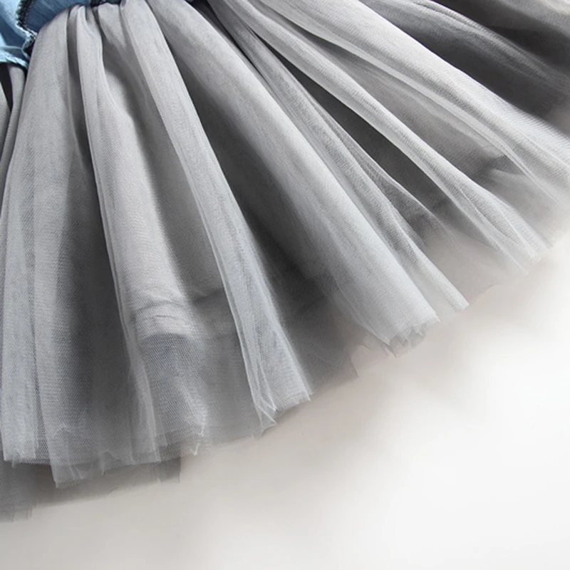 Платья для девочек, новинка 2018, модная одежда принцессы, ковбойская строчка, Сетчатое бальное платье, платья для девочек, одежда для женщин