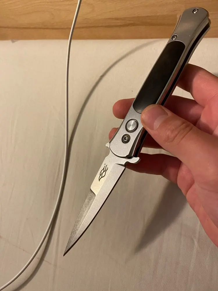 очень качественный нож. острый. открывается с отдачей. кнопка на удобном месте. вес хороший. продавец вообще красавец, я просил не писать на посылке что внутри нож, чтобы избежать таможенного контроля и конфискации (в прошлом были проблемы) так продавец выполнил мою просьбу и всё дошло чётко. советую.