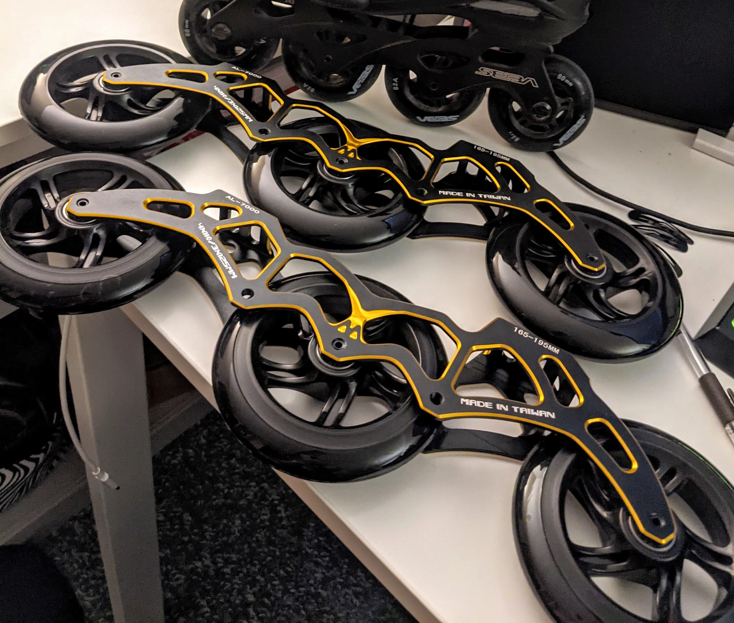 Fast delivery! So far, these are great! I put them on my SEBA fr skates, felt weird at first because of the added height and length of the frames. Can go so much faster, and the big wheels (125mm) move a lot better over bumps and cracks on the road.