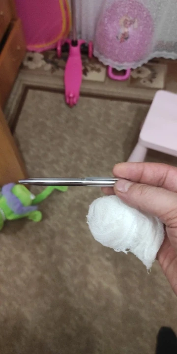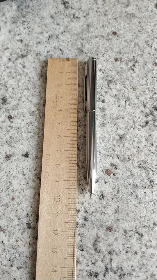 Реально очень маленькая ручка. Именно то, что я и искал. Можно полностью поместить в стандартную сигаретную пачку. Автоматика поворотом корпуса.