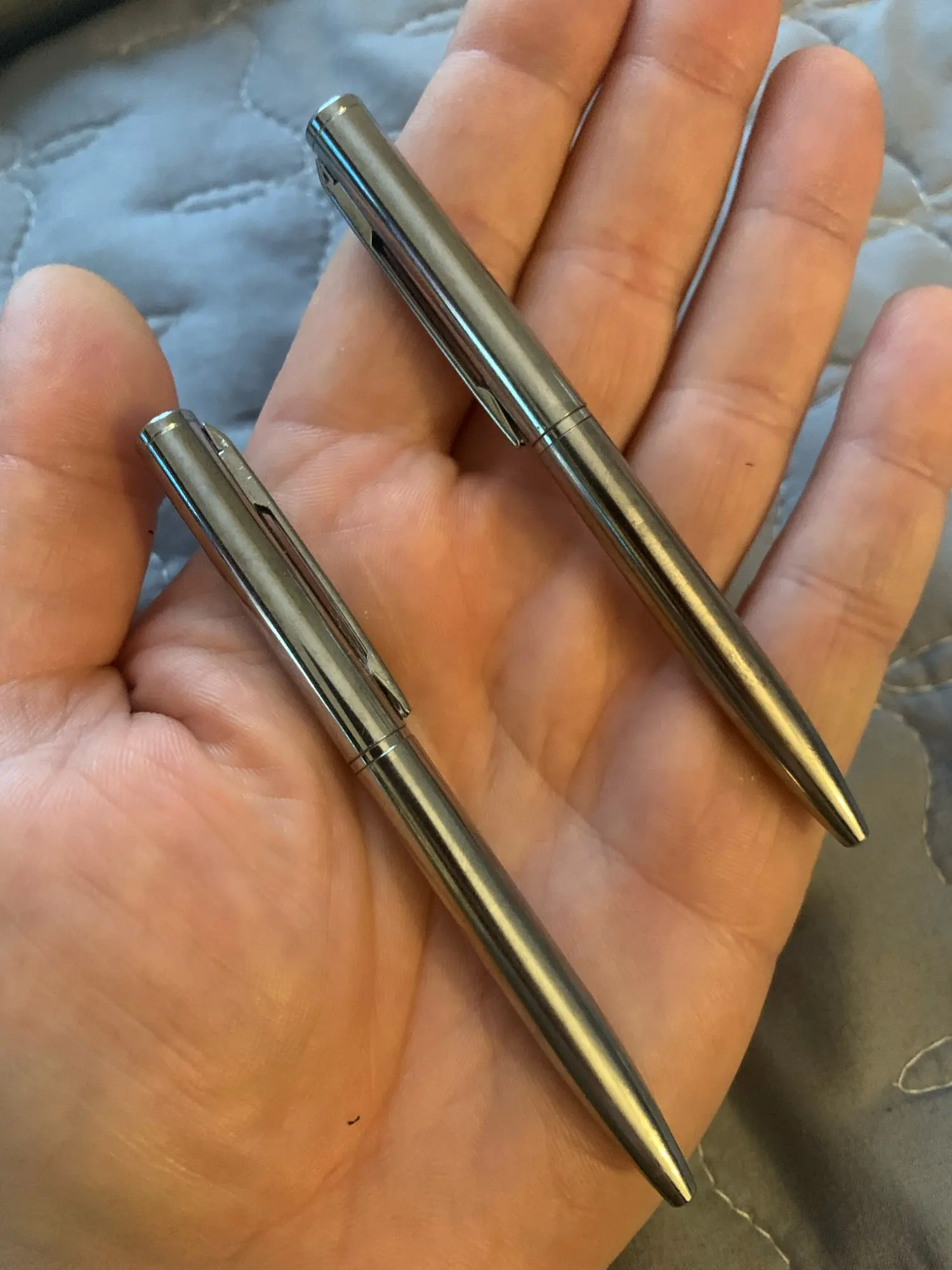 Они реально маленькие, с мизинец, очень не удобно писать, из за размера маленький хват. А так отлично, пойдёт в кармане носить