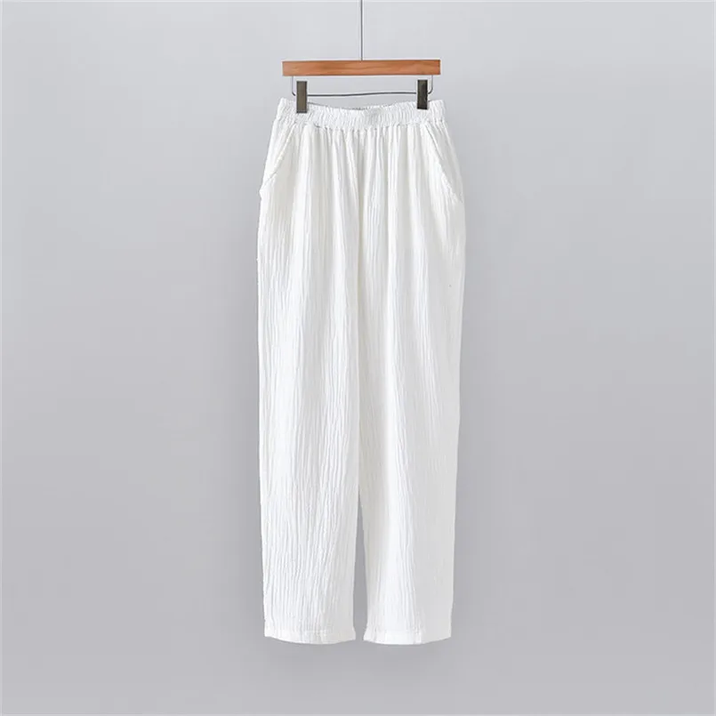 Брюки-Карандаш размера плюс Женские однотонные, элегантные хлопковые свободные штаны с эластичным поясом и карманами, L-7XL