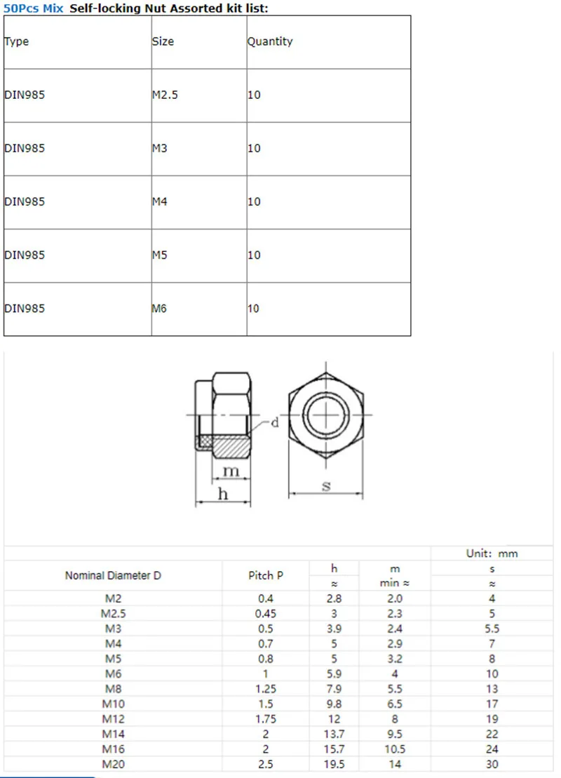 5102050 шт. DIN985 M2 M2.5 M3 M4 M5 M6 M8 304 нейлоновые самоблокирующиеся шестигранные гайки из нержавеющей стали, Контргайка, скользящая фиксирующая гайка