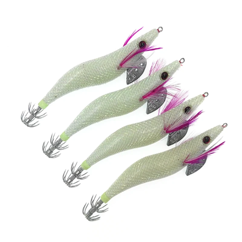 4 шт., 3,5 # приманка для ловли кальмара, 13,5 см, 21 г, приманка для ловли осьминога, деревянная светящаяся приманка для ловли креветок, искусственная приманка для рыбы, шлэллин