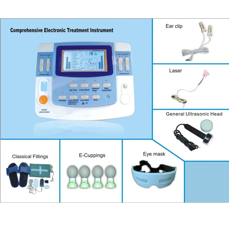 8,9 каналов: 6 для электротерапии, 1 для лечения инфракрасного нагрева, 1 для ультразвука, 1 для лазерной терапии