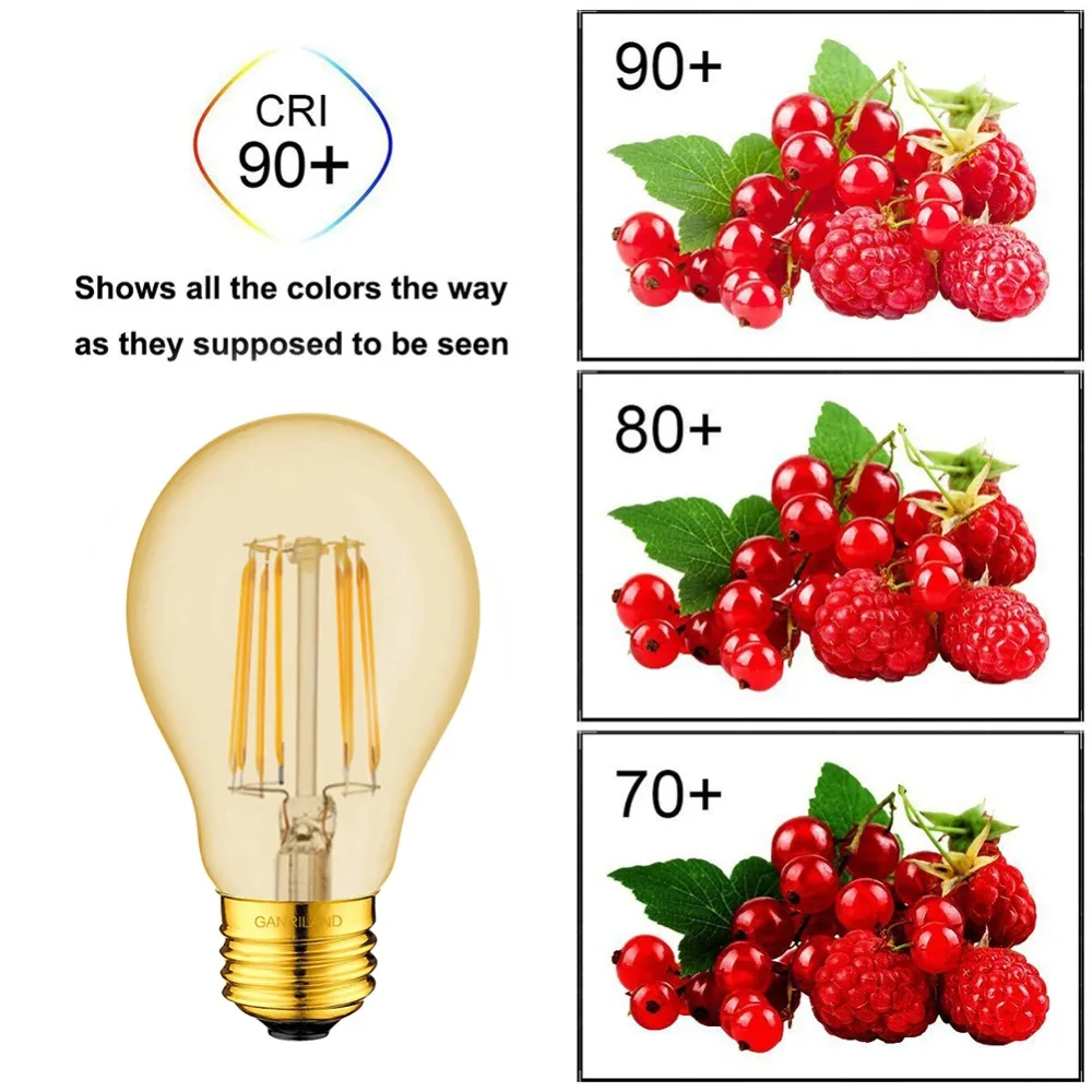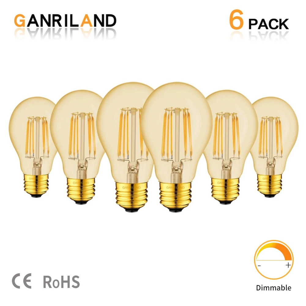 Светодиодная лампа с регулируемой яркостью Ganriland A19, золотистый оттенок, E27, винтажные светодиодные лампы 2200K, 8 Вт, декоративные подвесные светильники для гостиной