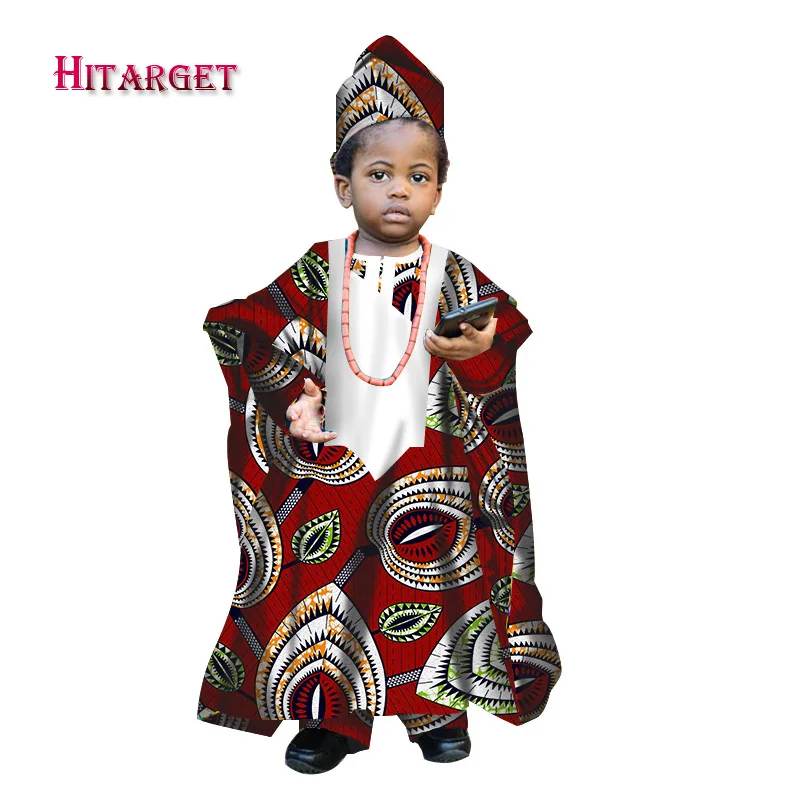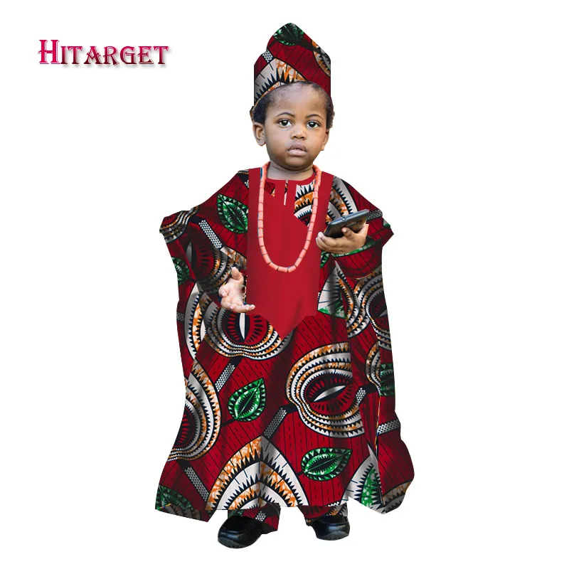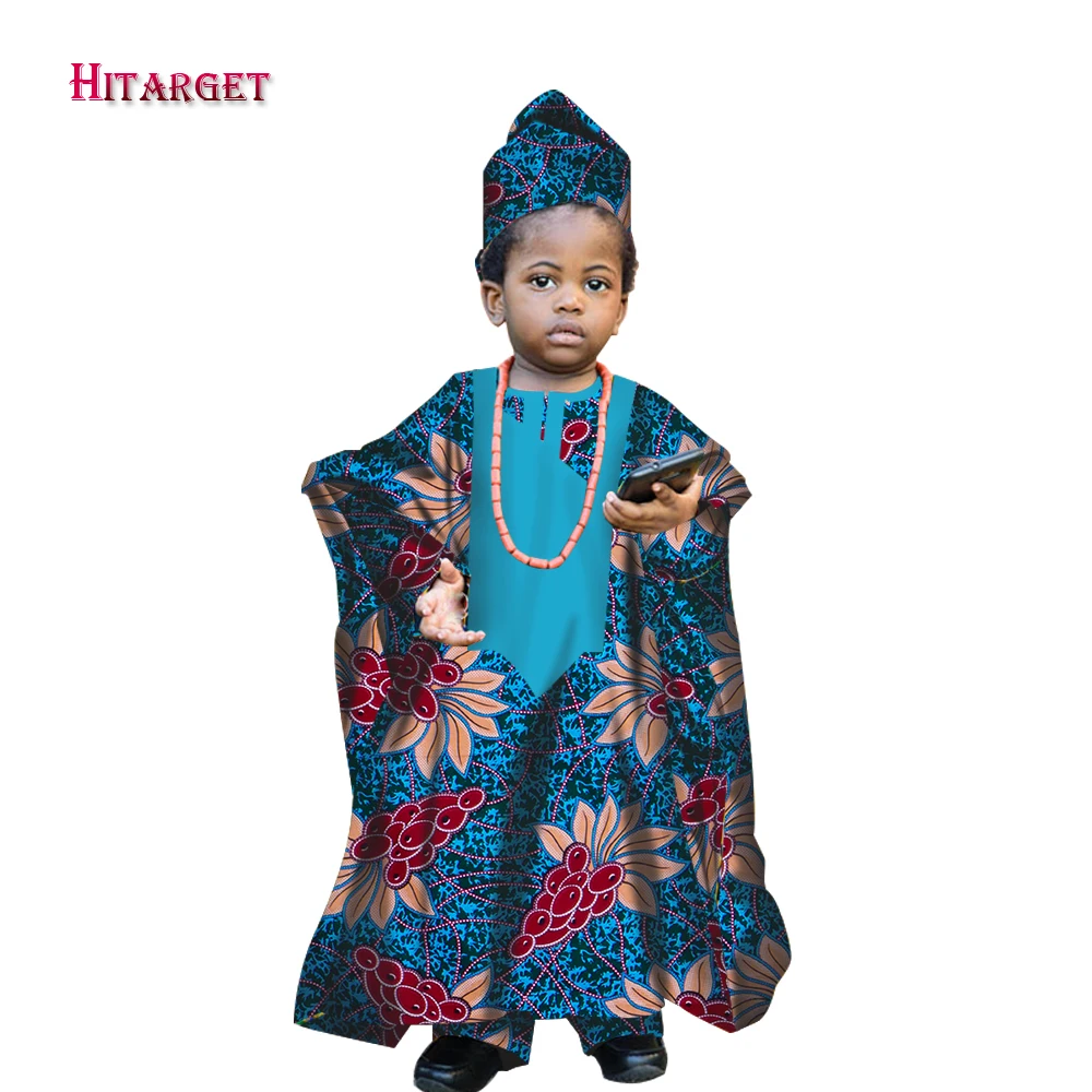 Африканский осенний Семейный детский Дашики, традиционный хлопковый комплект из топа с длинным рукавом и брюк с шляпой и африканским принтом, комплект одежды для мальчиков WYT137