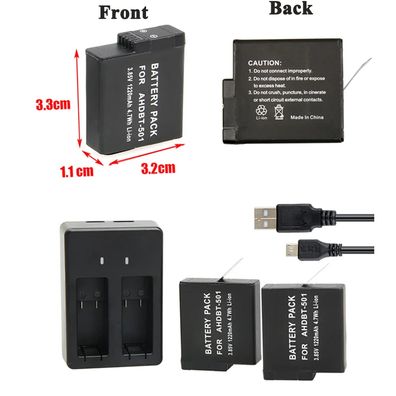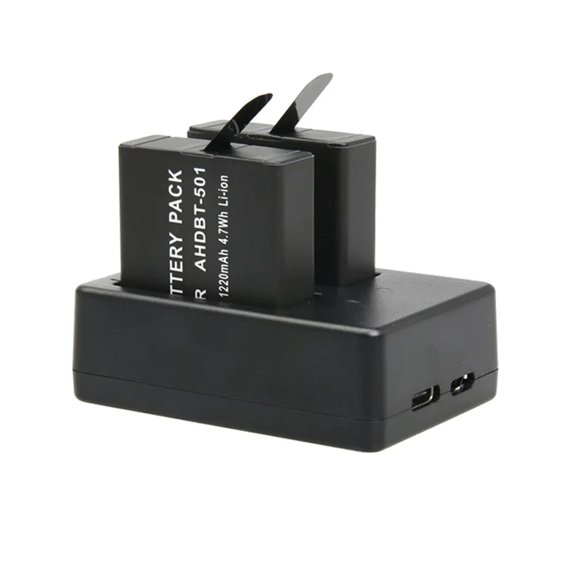 Зарядное устройство для двух аккумуляторов GoPro5, 6, 7, 8, 2 шт., перезаряжаемые Аккумуляторы для спортивной камеры, GoPro Hero 7, Hero 6, Hero 5, черные аксессуары