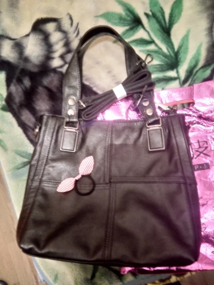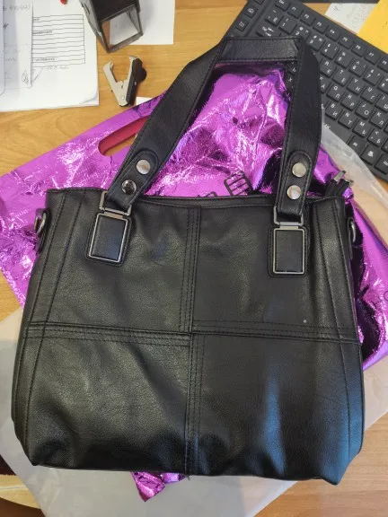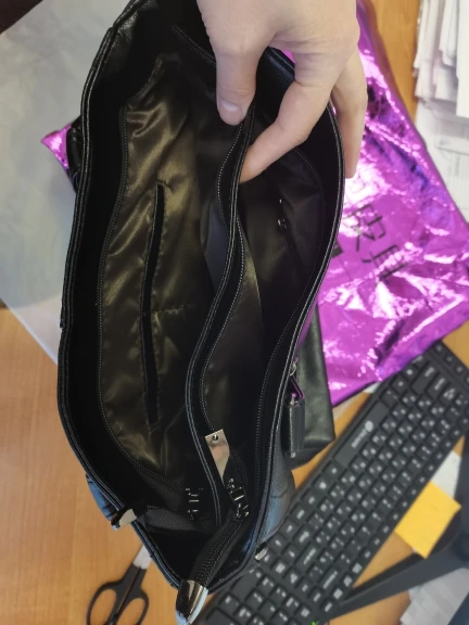 Хорошая сумка, без постороннего запаха. Подкладка шуршит, но мне нужна была объёмная сумка на работу, поэтому этот факт не критичен. Продавец положил резинку для волос☺️