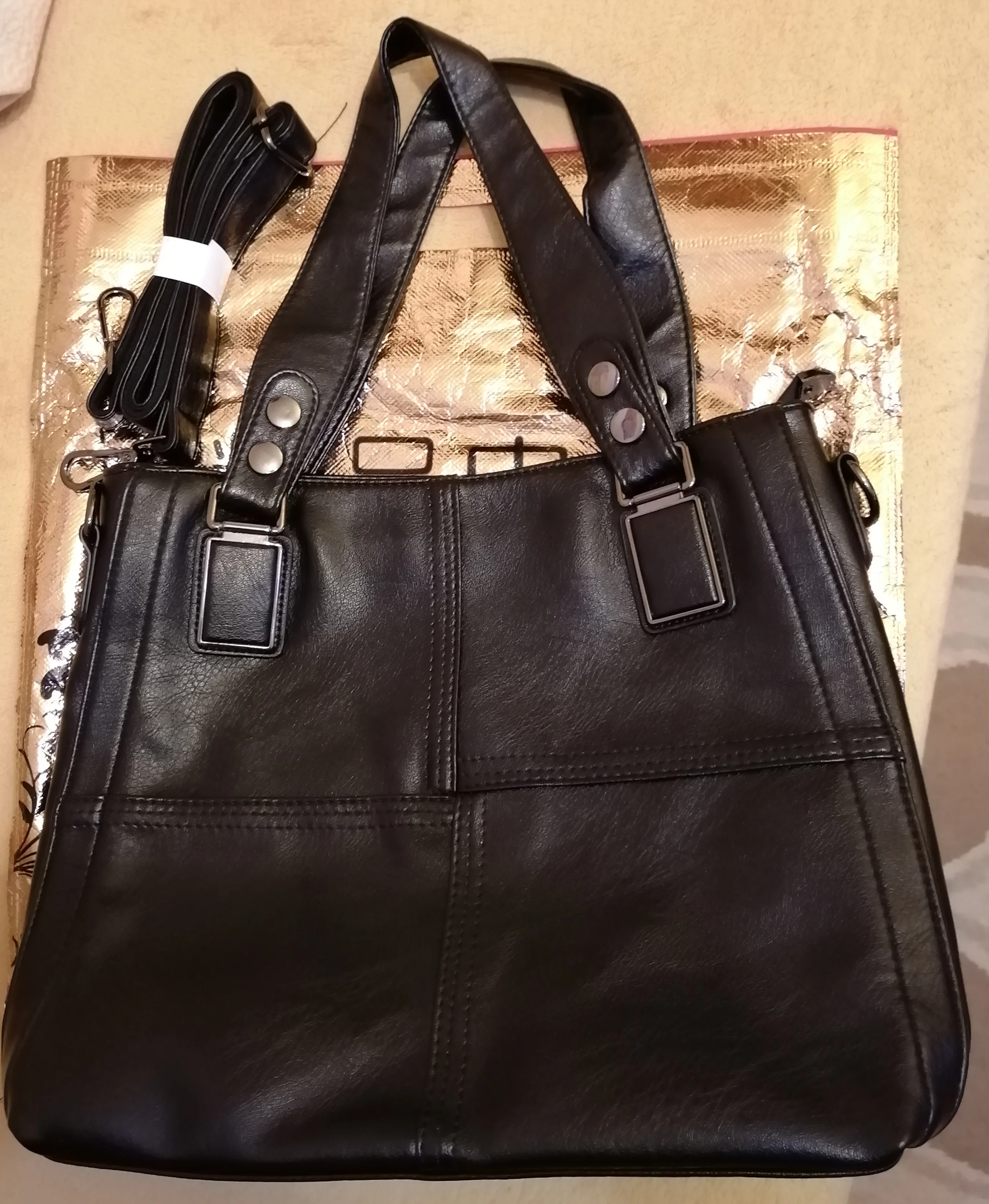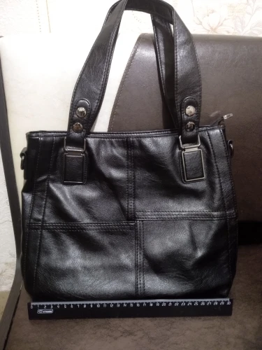 Очень хорошая, большая сумка. Кожа мягкая. Сумка имеет 2 больших отделения на молнии и 2 маленьких кармашка на молнии. Ещё 2 отделения внутри сумки для мобильного телефона. Сшита хорошо, швы ровные. Спасибо магазину за качественный товар. Упакована очень хорошо, продавец положил резиночку для волос, что очень приятно.