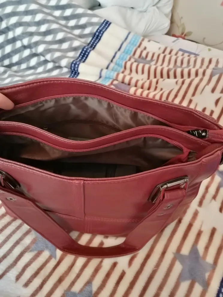 Хорошая, качественная сумка, красивый насыщенный бордовый цвет. Пришла супер быстро, за 10 дней до Самары. Но, конечно, не натуральная кожа, как было обещано.
