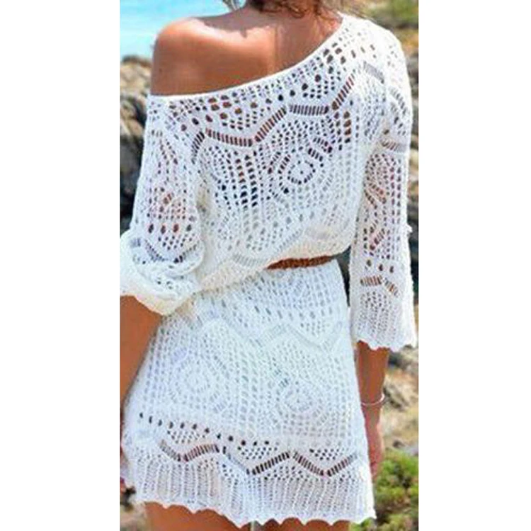 Женское летнее пляжное платье, кружевное ажурное вязаное крючком бикини, накидка, свободный купальник, пляжная одежда без пояса, маленький размер