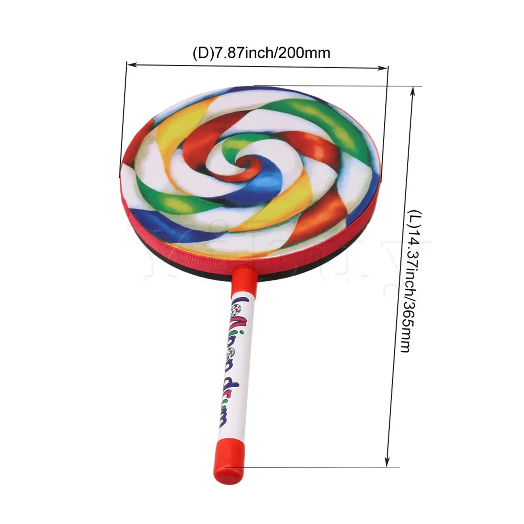 Ручной барабан Yibuy 7,9 дюйма в форме леденца, Ударные музыкальные инструменты, развивающие игрушки для детей и малышей с конфетами, ударная палочка