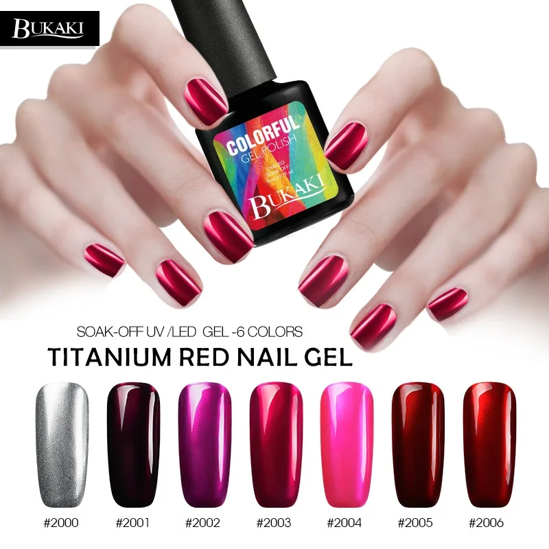 BUKAKI Титан красный Гель-лак гибридный Цвет Vainish металлический зеркальный эффект гель лак Ультрафиолетовый гель Lucky блестящий дизайн ногтей