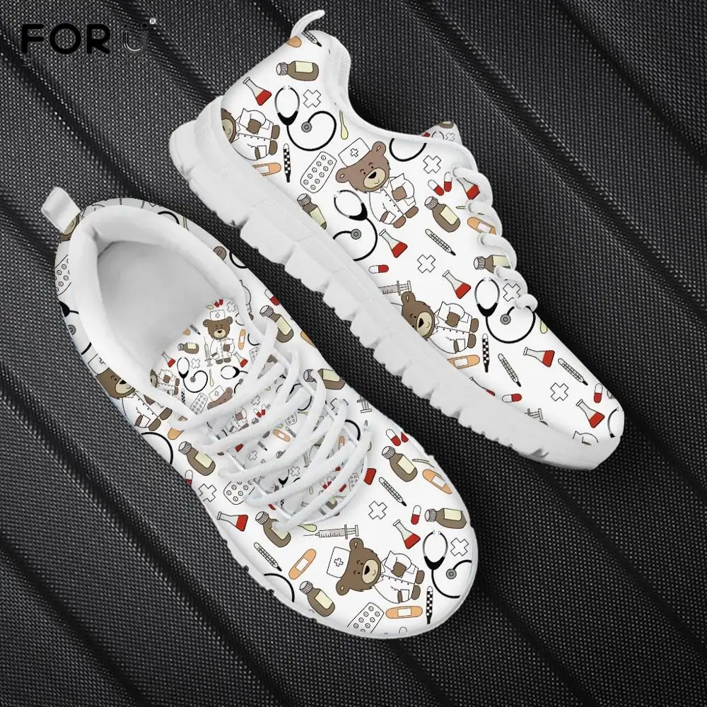 Pattern3D Cute Cartoon Nurse Bear Pattern Women Sneakers