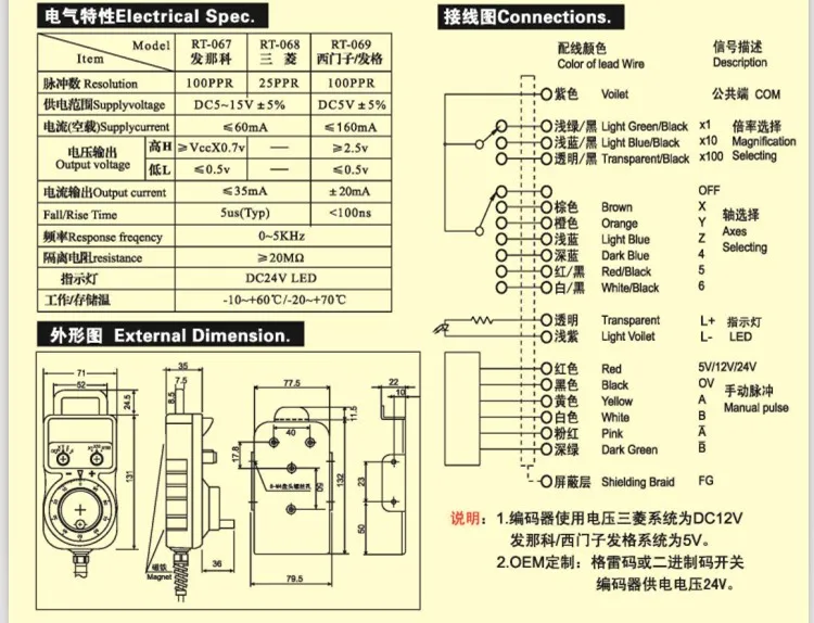 RT067-MK2-TИсточник питания DC5V, выходной Пульс 100 импульсов/за оборот, фазовый выход A, B две импульсные последовательности A и B фазовая разница 90 ·, схема открытого коллектора, встроенный 2K ohm выдвижной резистор