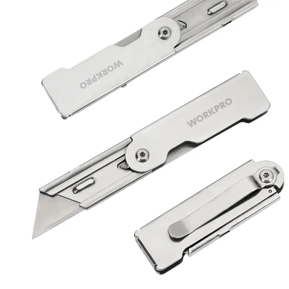 Складной универсальный нож WORKPRO 3 шт., быстросменный стандартный нож с зажимом для ремня, лезвие для резки бумаги в коробке