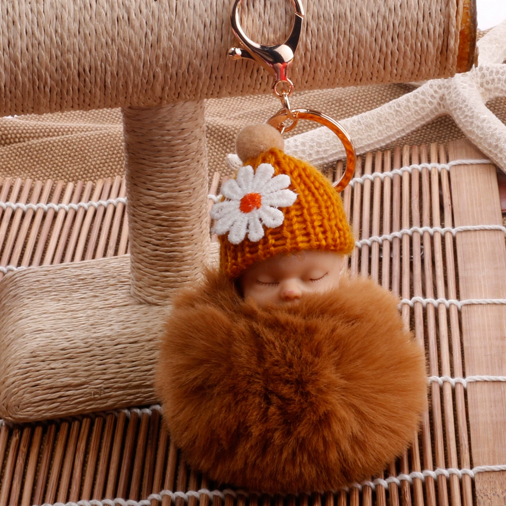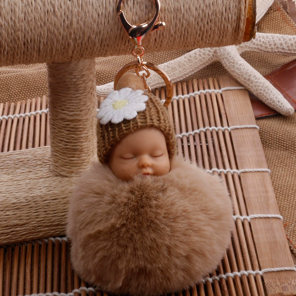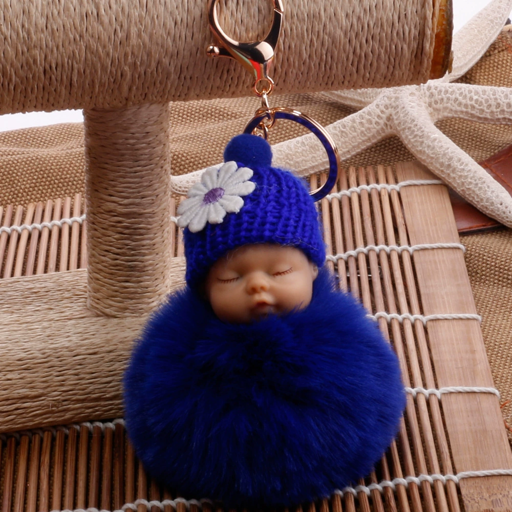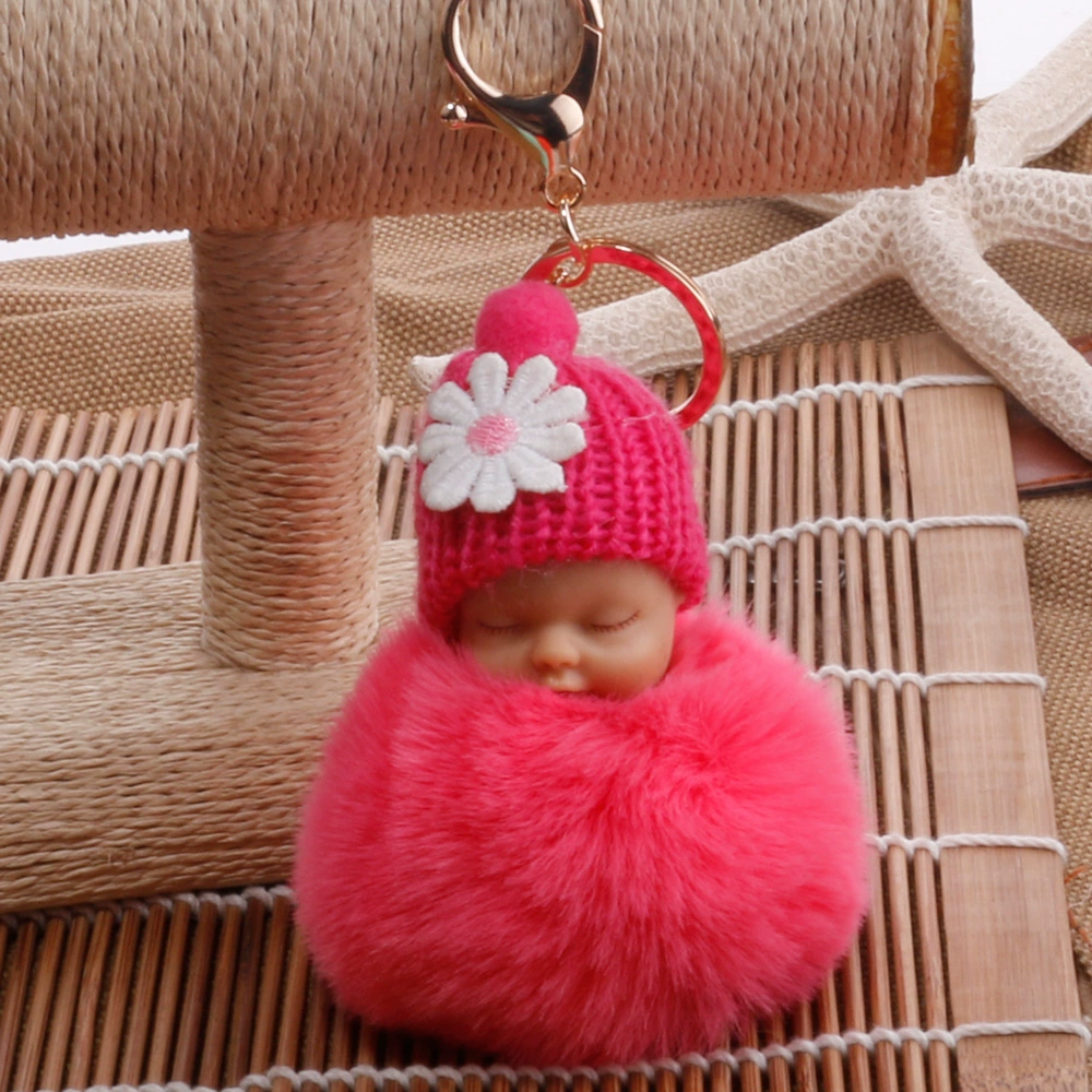 Брелок для ключей Спящая кукла помпон из искусственного меха шарик автомобильный брелок Детская игрушка женский держатель для ключей Подвеска для сумки цепочка для ключей в подарок брелок