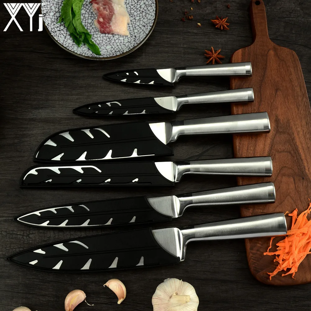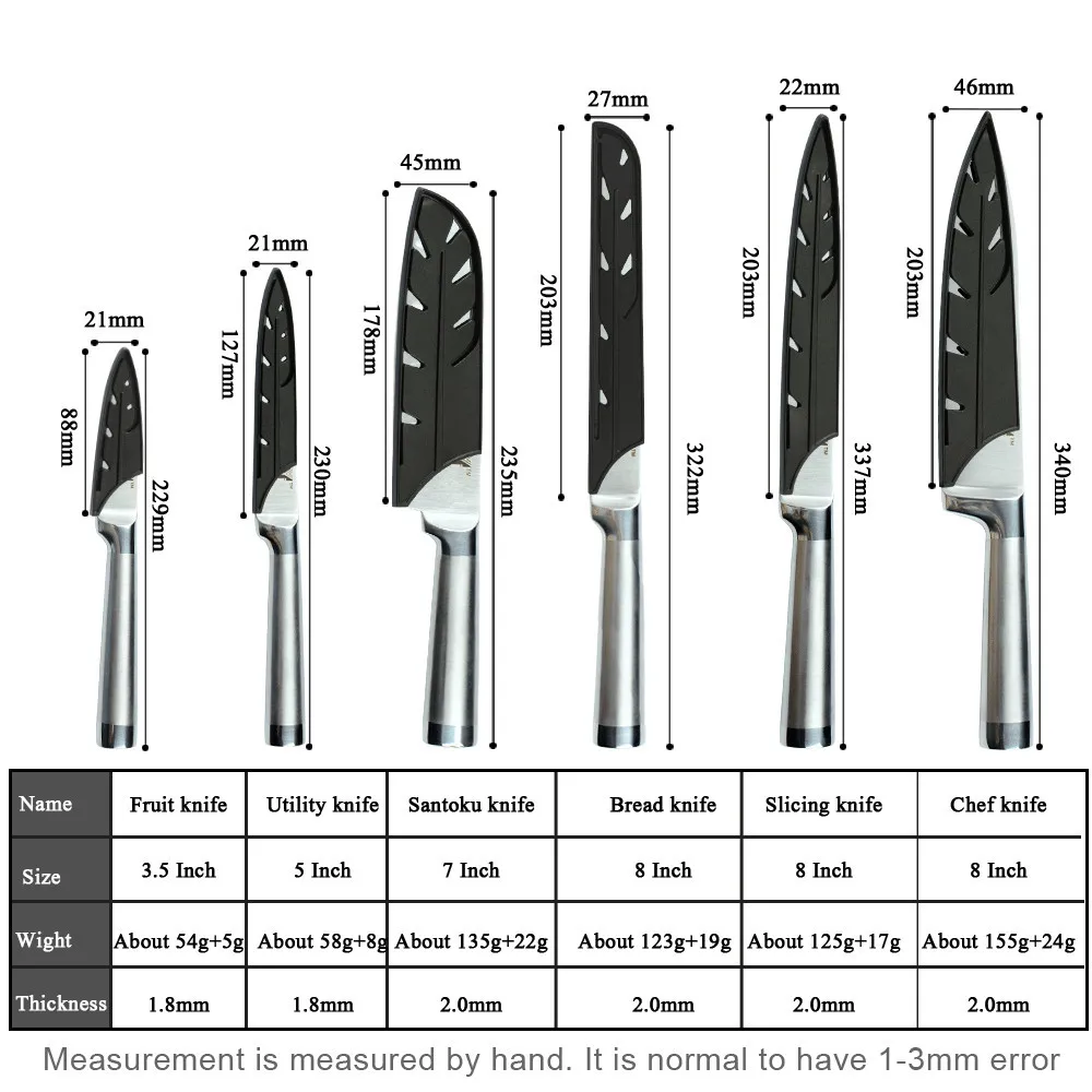 Набор кухонных ножей удовлетворил почти все ваши потребности в разделочных работах, набор ножей из нержавеющей стали подходит для резки овощей, фруктов, мяса, рыбы, суши, хлеба и т. д.