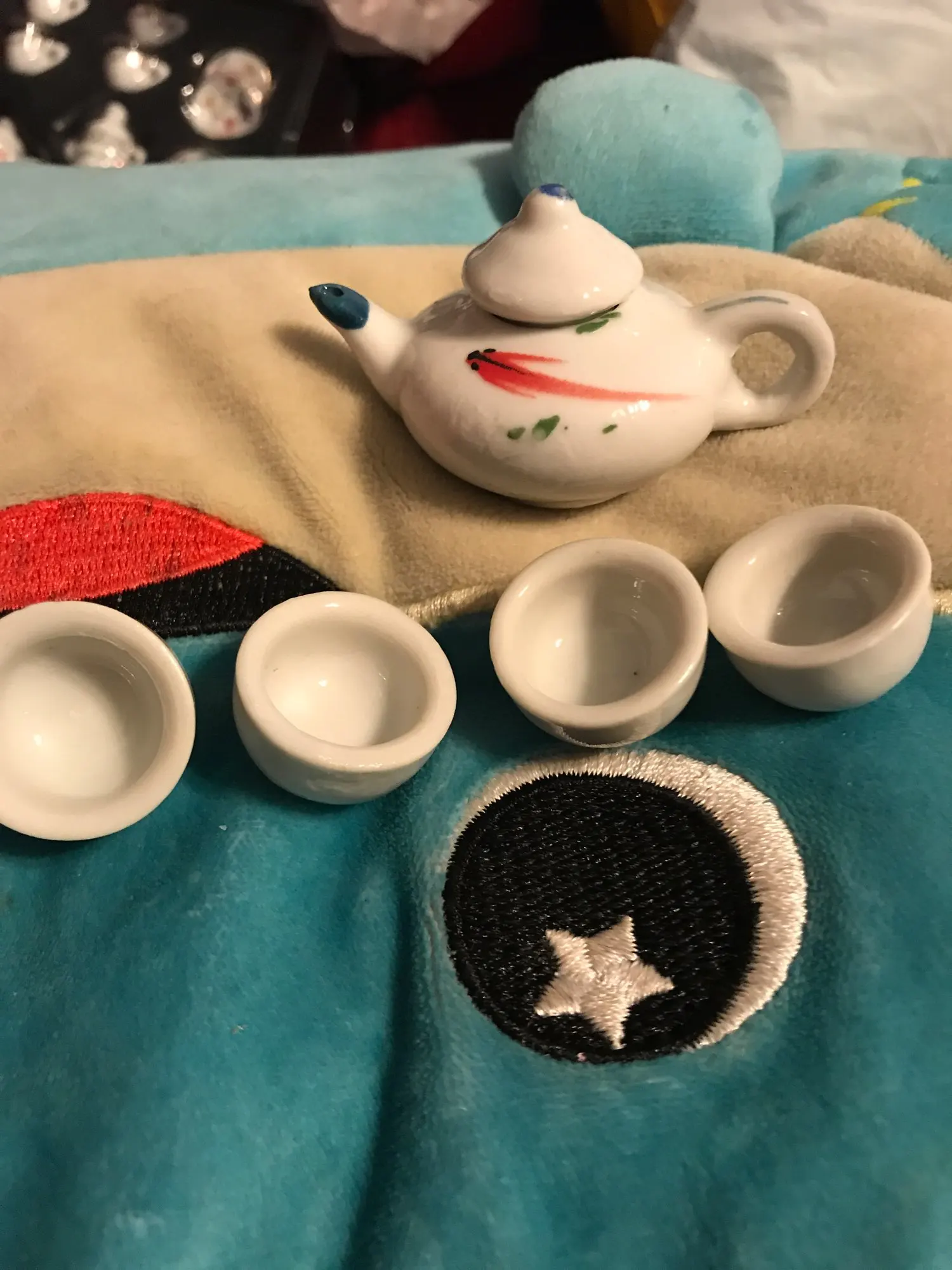 Фарфор, очень очень хороший сервис идеально подходит по размеру для кукол 1/6