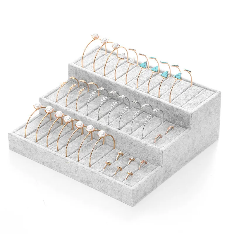 Серый бархатный 3-слойный дисплей для колец, дисплей для ювелирных ...