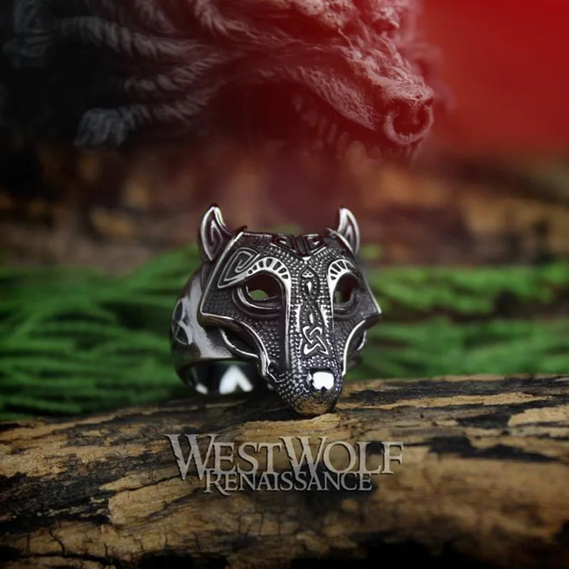 Мужское кольцо с рунами Beier, кольцо из нержавеющей стали 316L с символом Одина в виде головы волка в скандинавском стиле, LR534, норвежский викинг